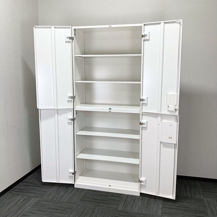 イトーキ エスキャビネットシリーズ 両開き書庫[シリンダー錠/2022年製]+両開き書庫 [ダイヤル錠/2019年製]W900×D450×H2136 ホワイト 中古 ⑩