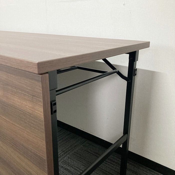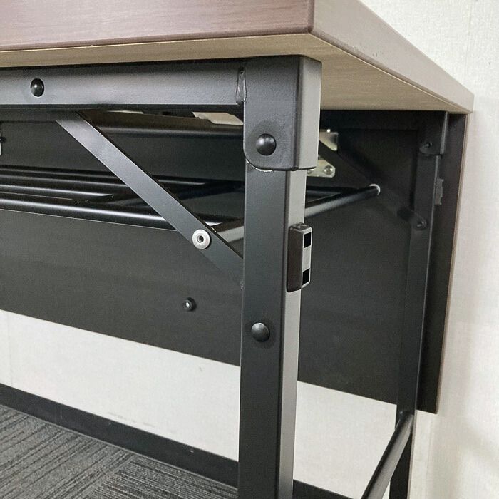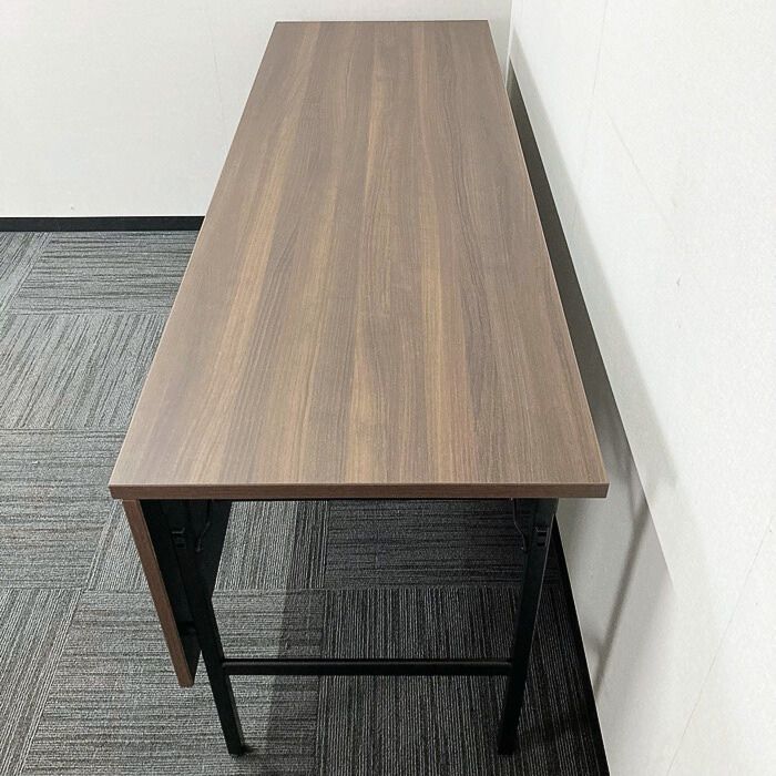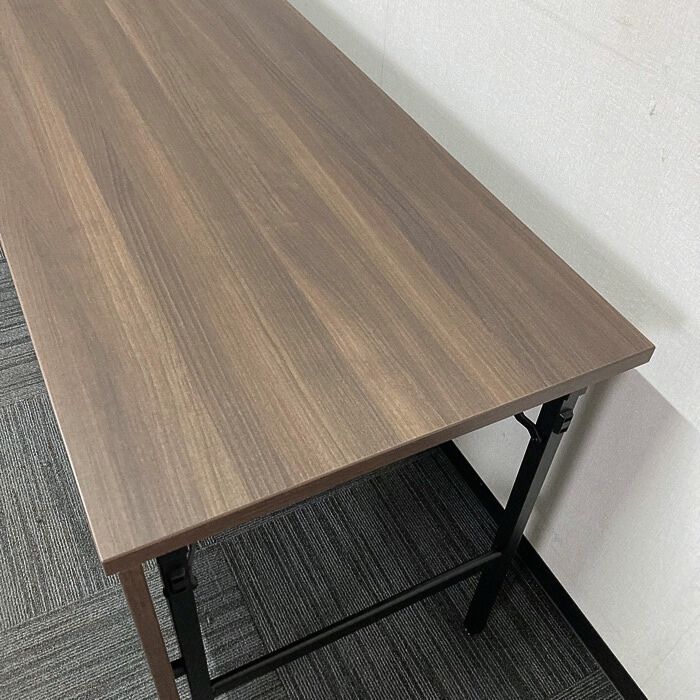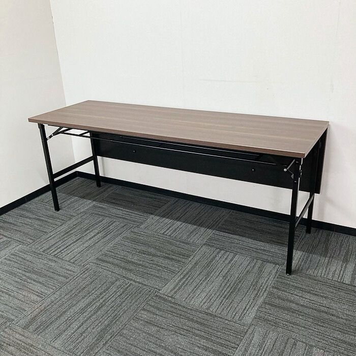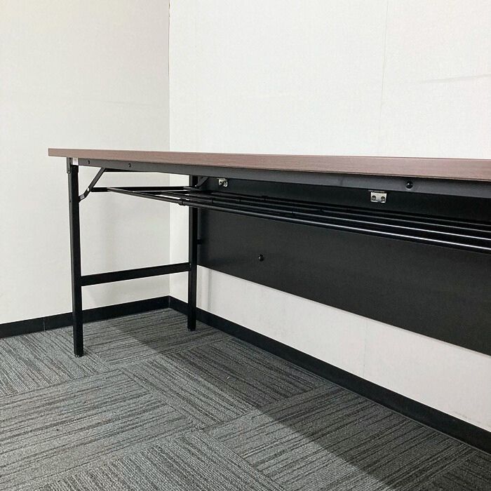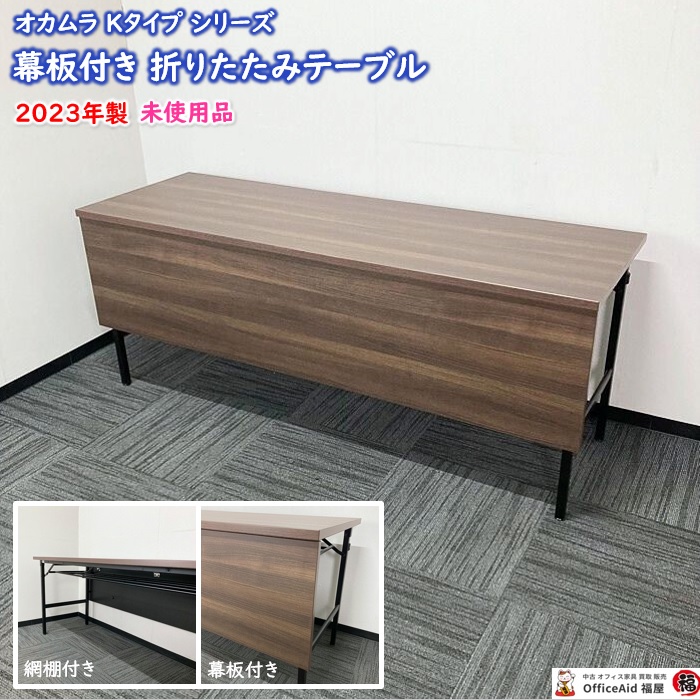 オカムラ Kタイプシリーズ 折りたたみテーブル[幕板付き] 8186LQ MX63 W1800×D600×H720 天板:プライズウッドダーク/脚:ブラック 2023年製 未使用品 ※SALE品
