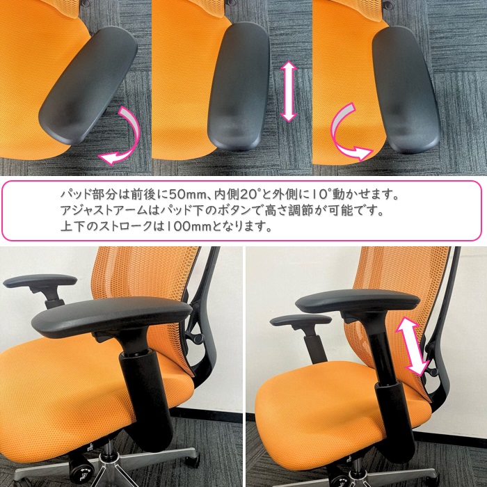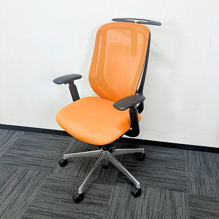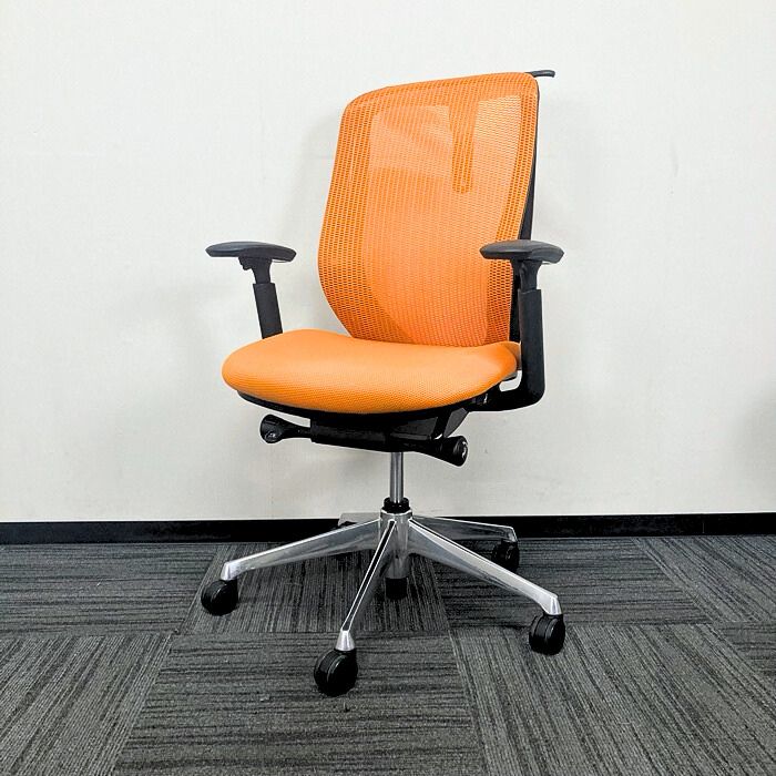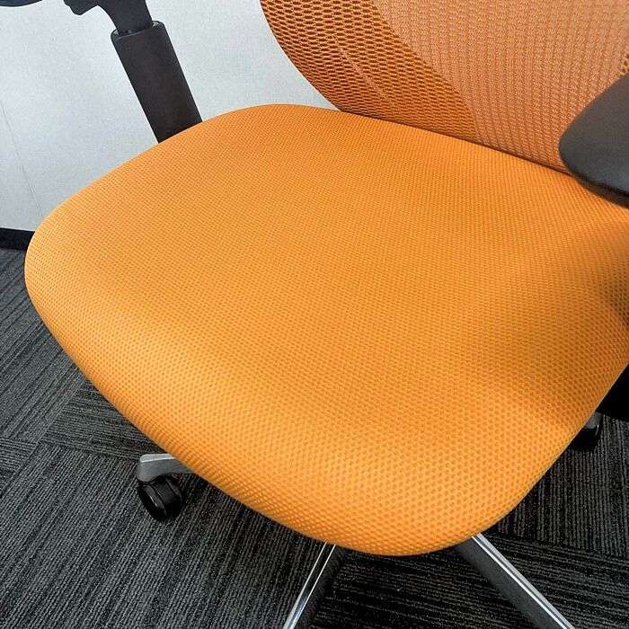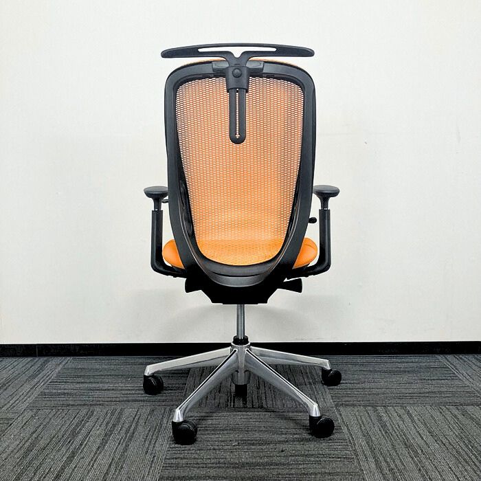 オカムラ シルフィーチェアシリーズ オフィスシーティング CB686BR FMR8 ホブラックフレーム ハイバック アジャストアーム付き 背/座:オレンジリーン 2016年製 中古