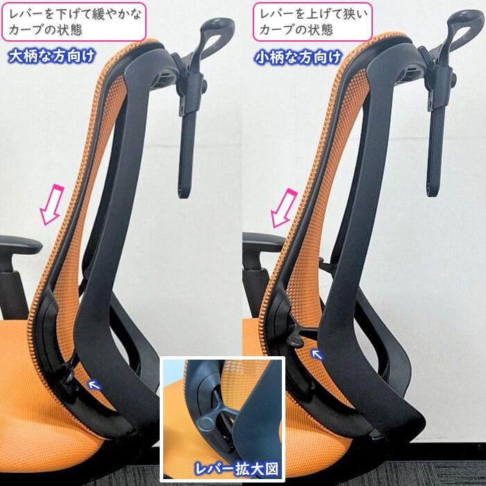 背もたれのカーブを2段階で調節できる新感覚のオフィスシーティング。