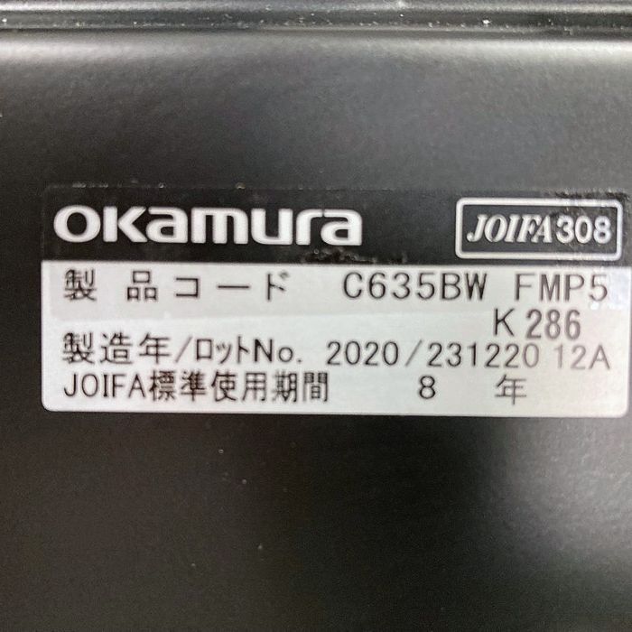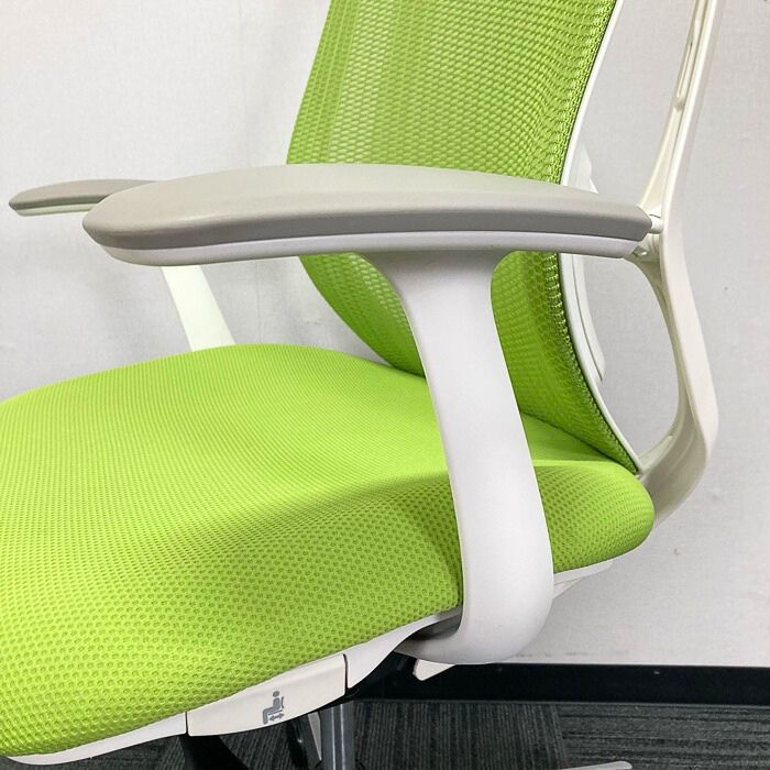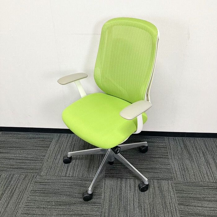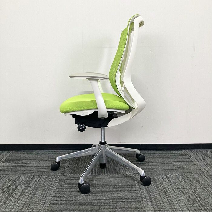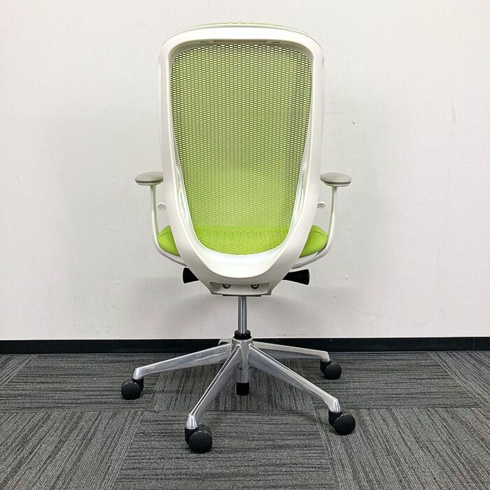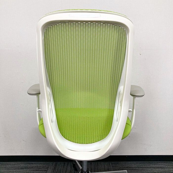 オカムラ シルフィーチェアシリーズ オフィスシーティング C635BW MP5 ホワイトフレーム ハイバック デザインアーム付き 背/座:ライムグリーン 2020年製 中古
