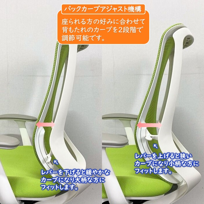 背もたれのカーブを2段階で調節できる新感覚のオフィスシーティング。