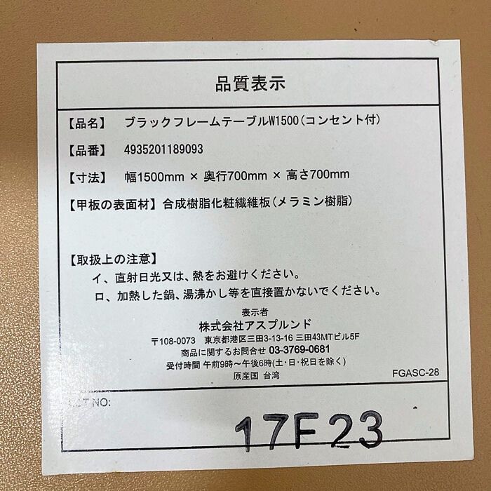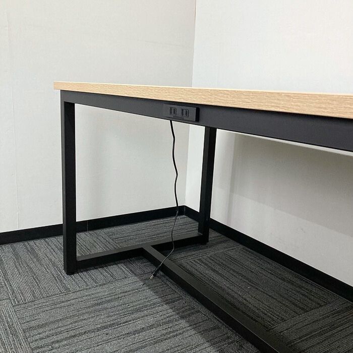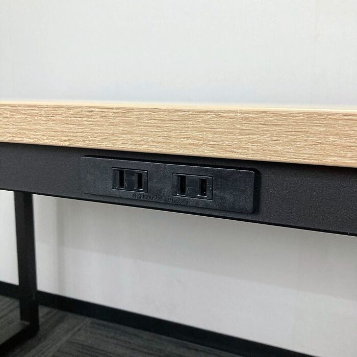 アスプルンド ミーティングテーブル W1500×D700×H700 天板:ナチュラル/フレーム:ブラック コンセント付き 中古 ⑳