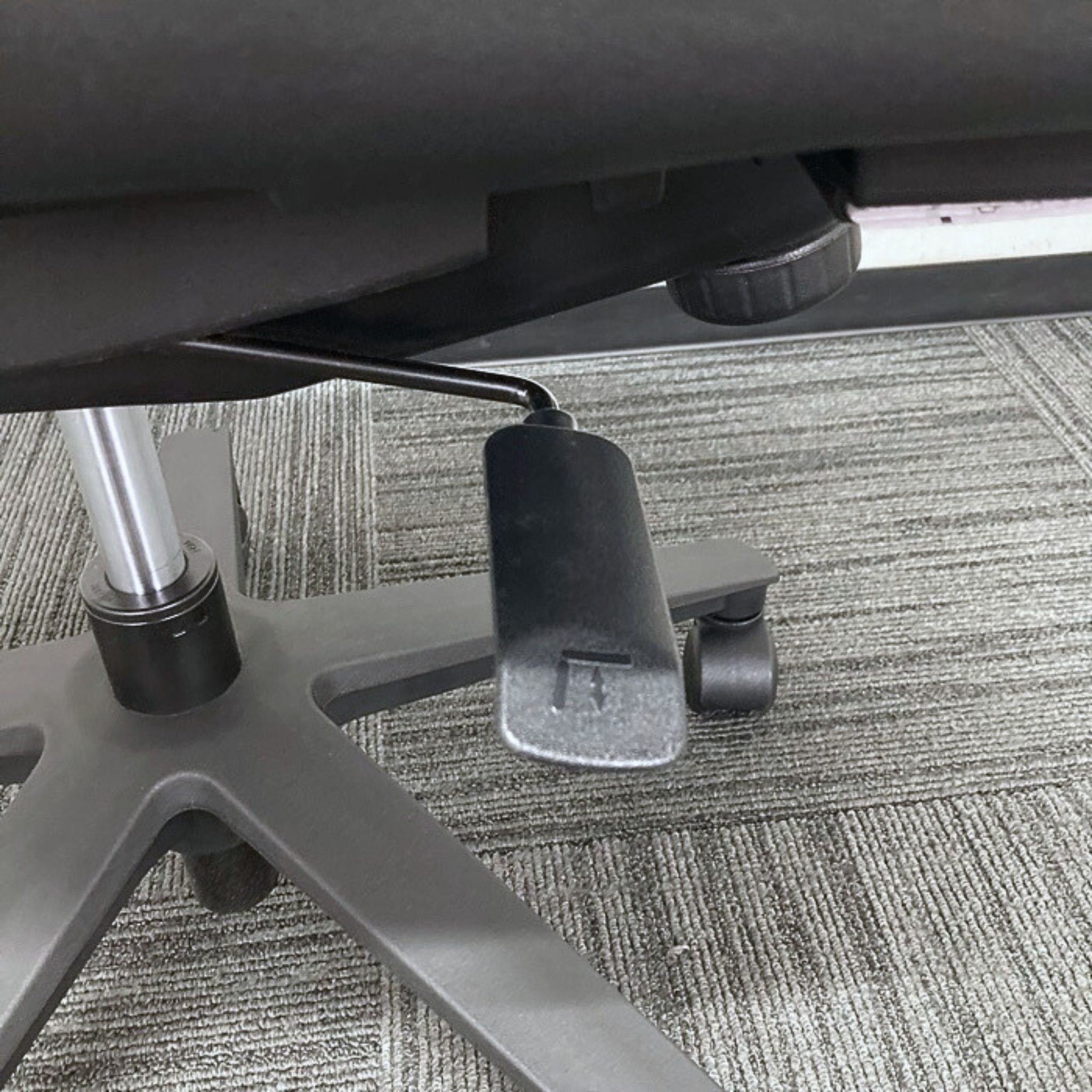 背と座が連動し、それぞれ違う角度でロッキングする機構で、ロッキングの支点をくるぶしに設定してあるため