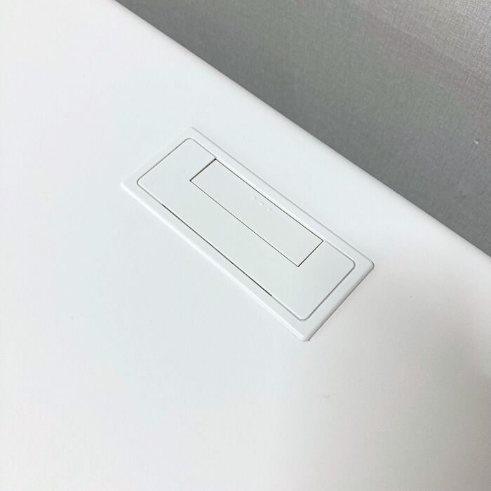 配線孔は天板後方に2箇所あり、引き出しはセンター引出しを大小の2種類備えております。