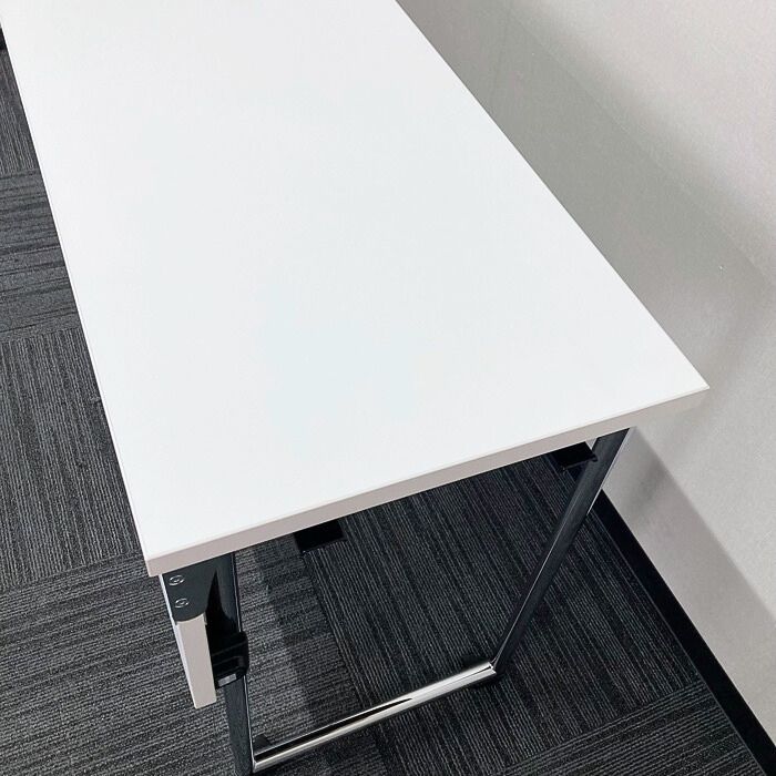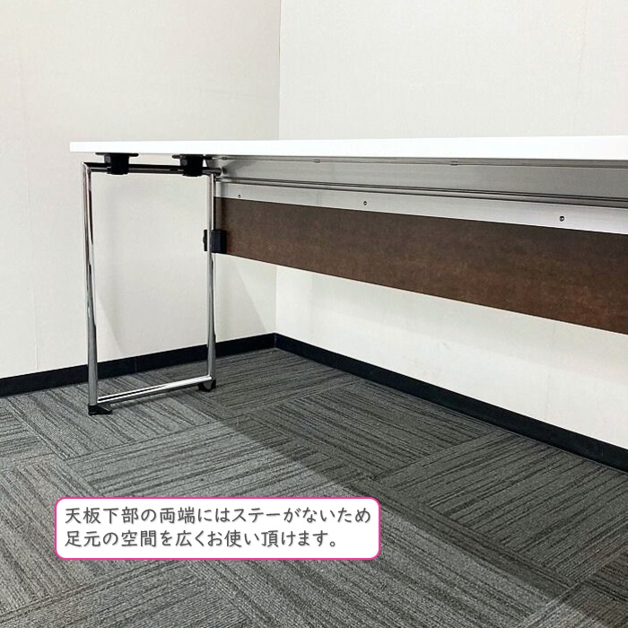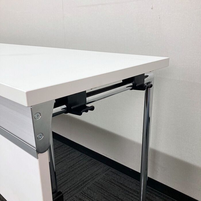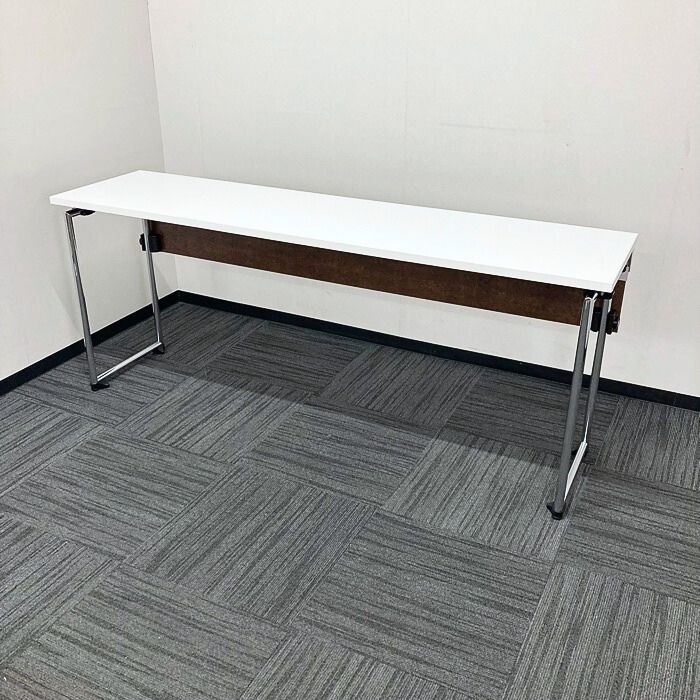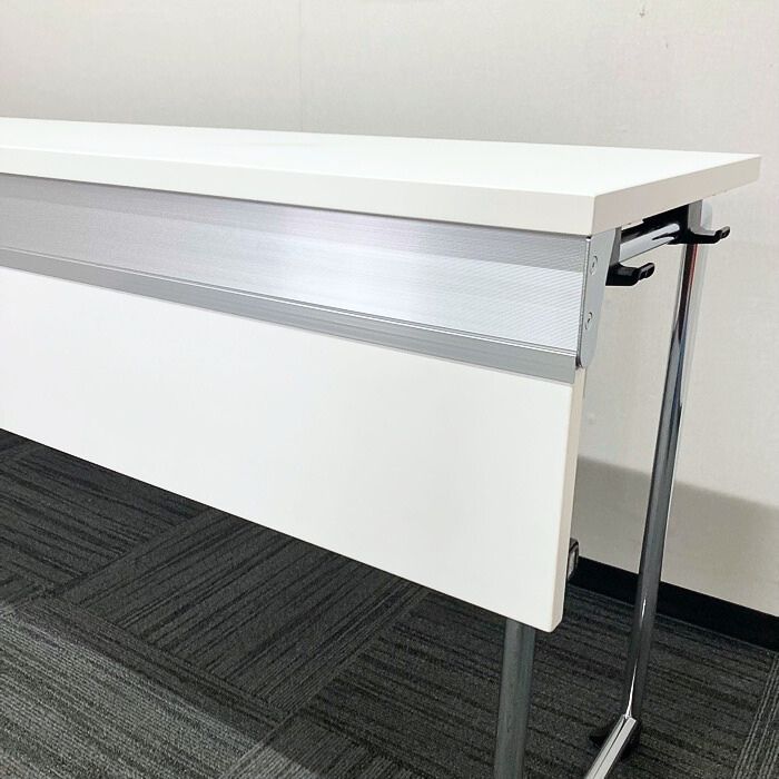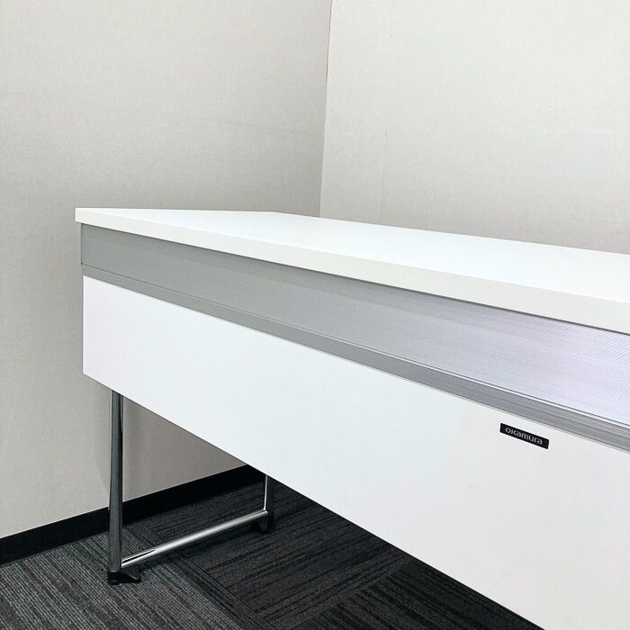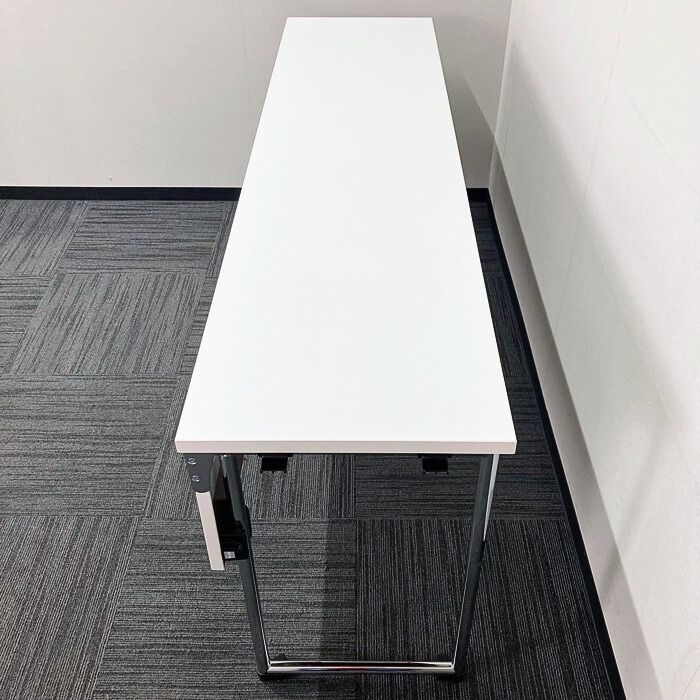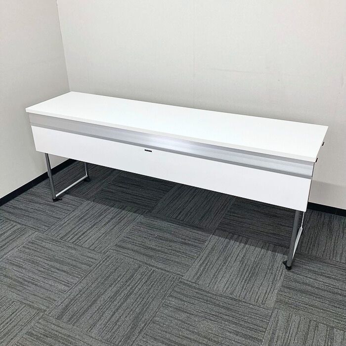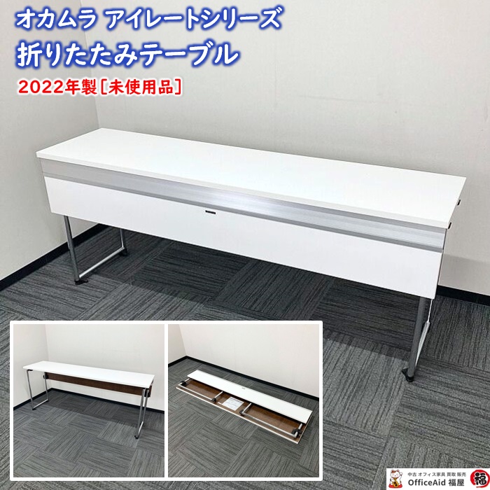 オカムラ アイレートシリーズ 折りたたみテーブル[幕板付き] L14TAZ MG07 W1800×D450×H720 天板:ホワイト/脚:シルバー 2022年製 未使用品 ※SALE品