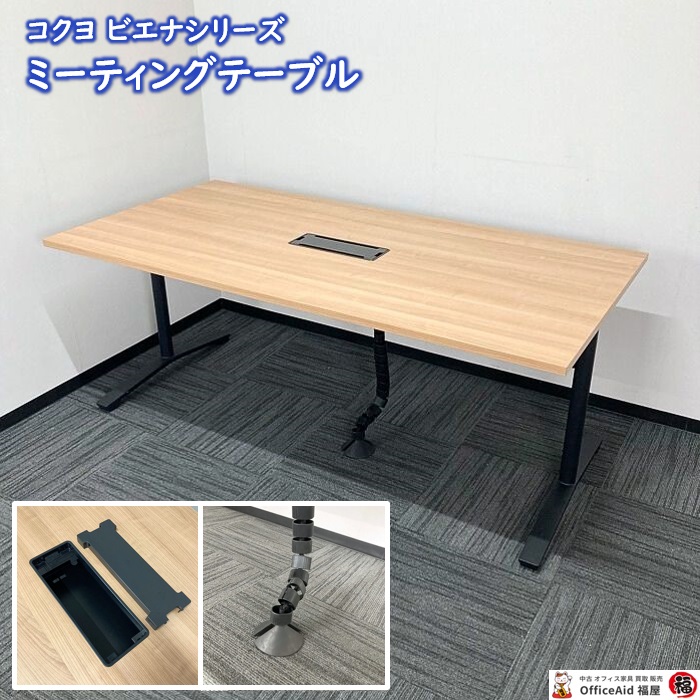 イトーキ DZシリーズ ミーティングテーブル DZP-189HA WBN-92 W1800×D900×H720 天板:ホワイトオークM/脚:ホワイト 2021年製 中古