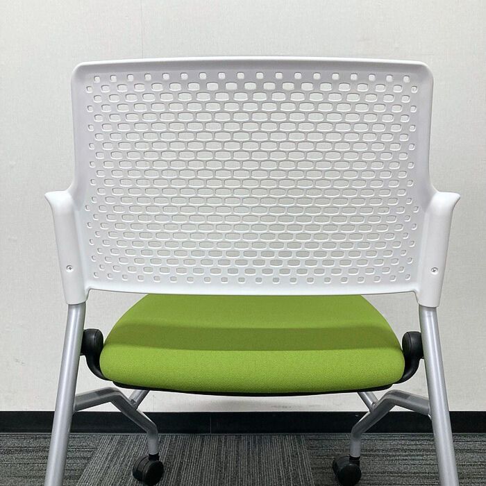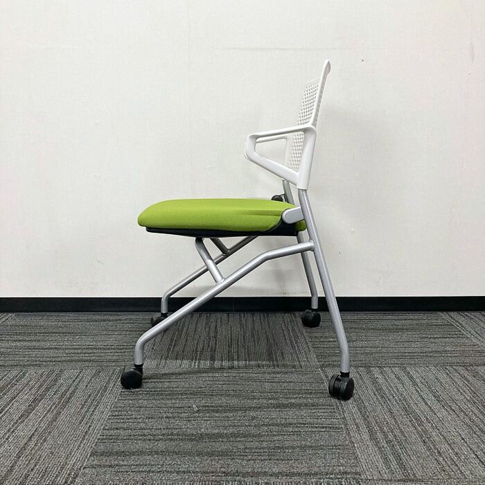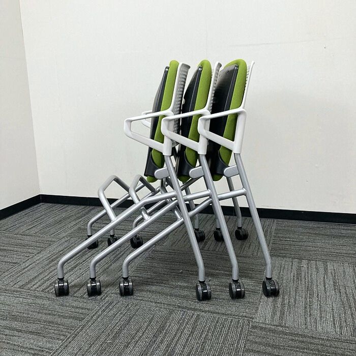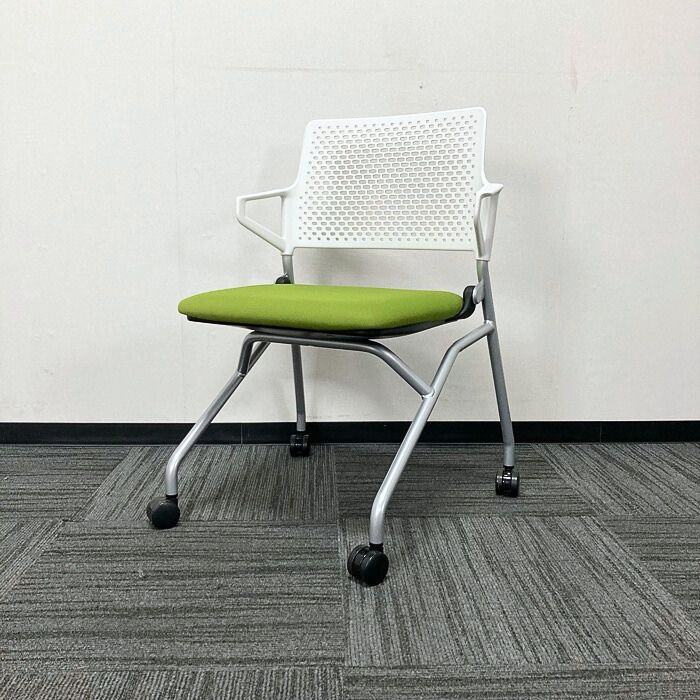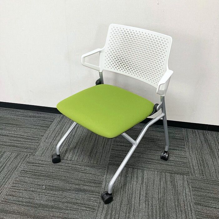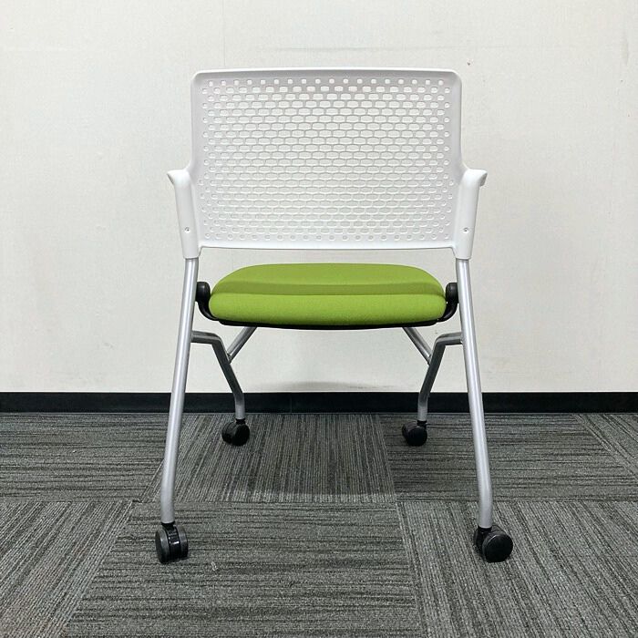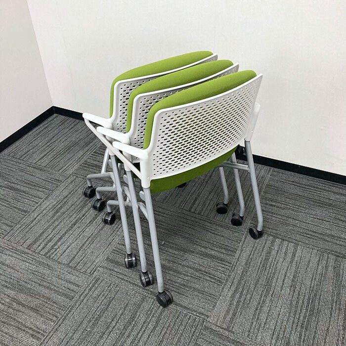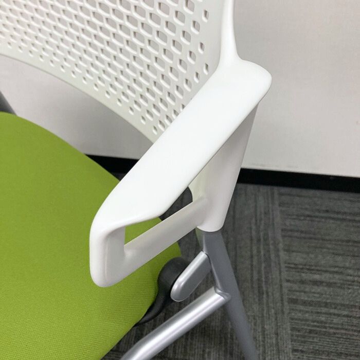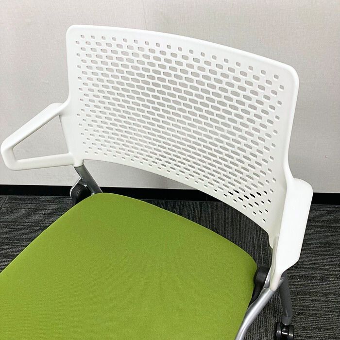 内田洋行 FM-345シリーズ ネスティングチェア FM-345WS 背:ホワイト/座:グラスグリーン 2018年製 中古 ⑩
