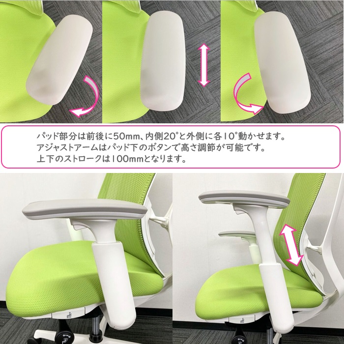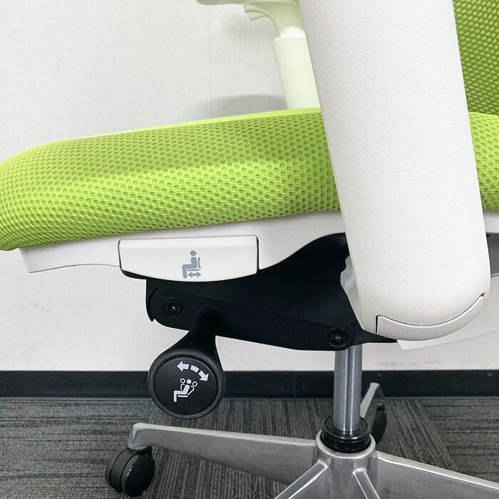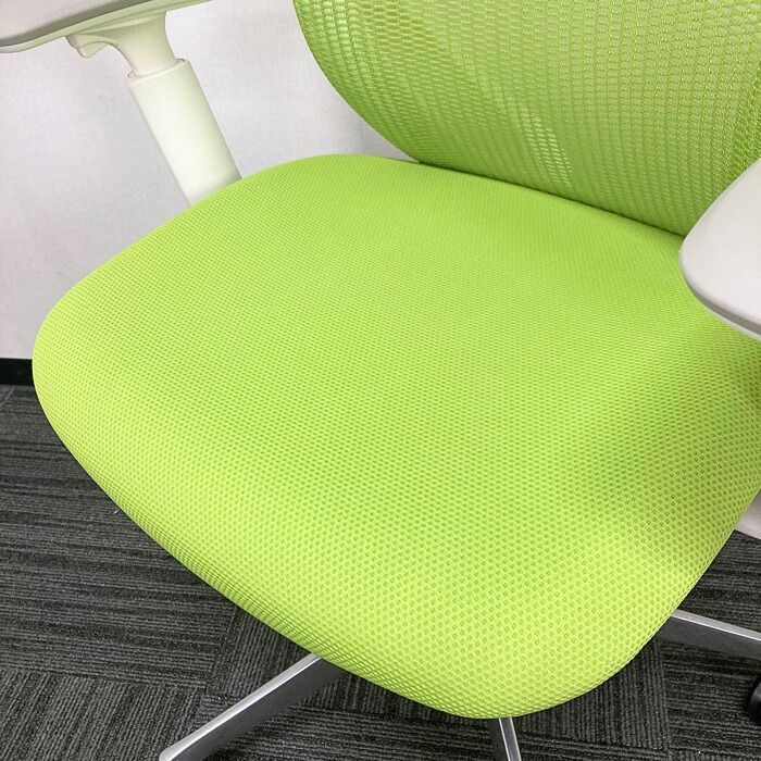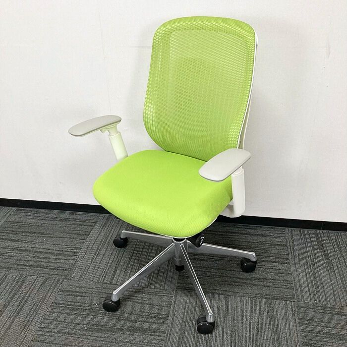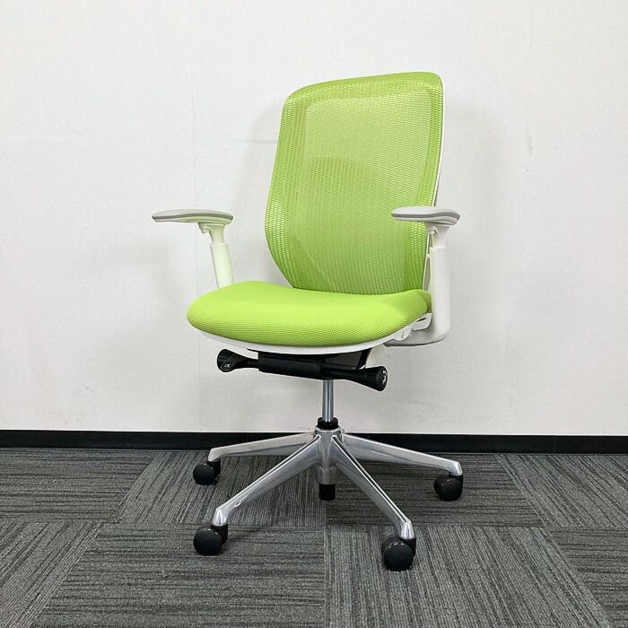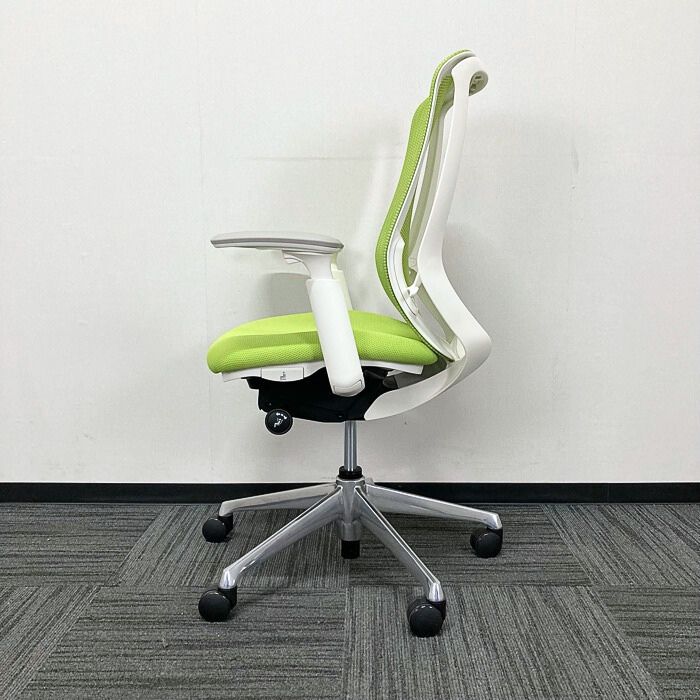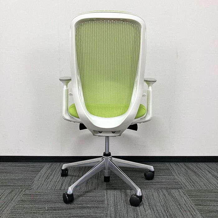 オカムラ シルフィーチェアシリーズ オフィスシーティング C685BW MP5 ホワイトフレーム ハイバック アジャストアーム付き 背/座:ライムグリーン 2021年製 中古