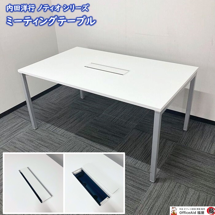 オカムラ 8177シリーズ ミーティングテーブル 8177EL MG99 W1500×D750×H720 天板:ホワイト/脚:シルバー 2019年製 中古