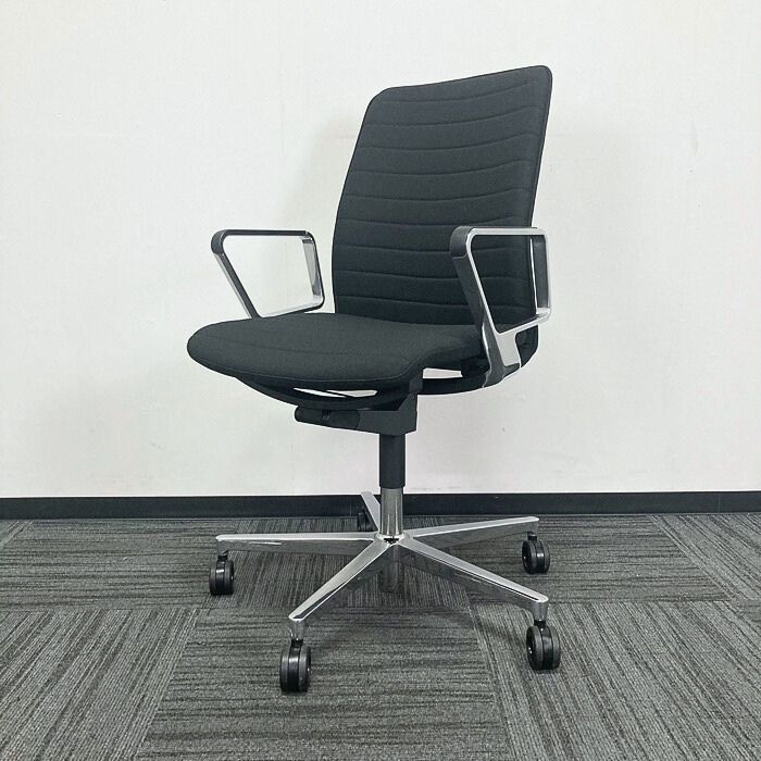 コクヨ ファブレチェアシリーズ オフィスチェア[アルミサークル肘] CO1S-B102C-1 ストライプタイプ ブラック 2021年製 中古