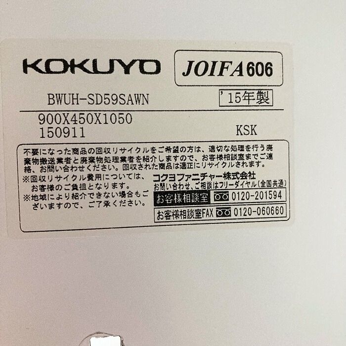 コクヨ エディアシリーズ 両開き+両開き書庫 W900×D450×H1810 ホワイト 中古