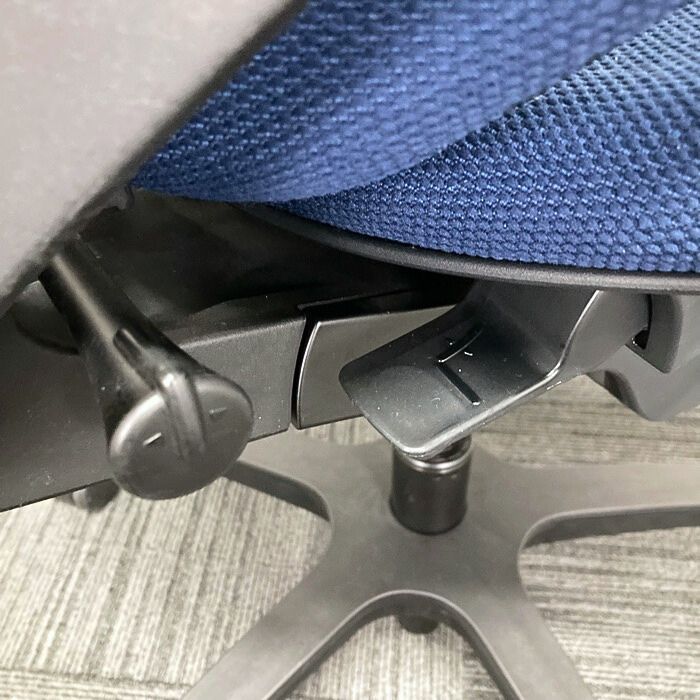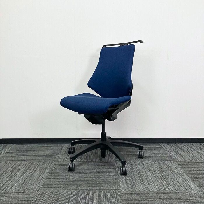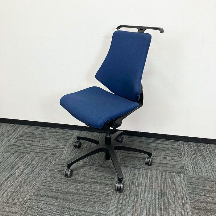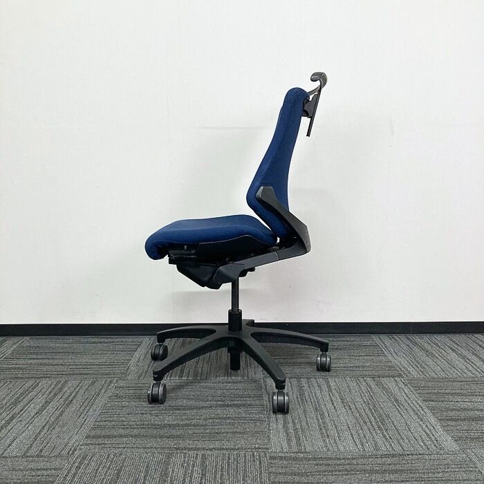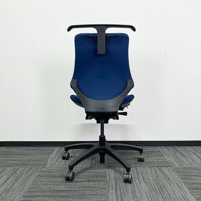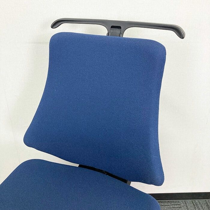 イトーキ エフチェアシリーズ オフィスチェア KE-140GSH-T1B2 ローバック ハンガー付き ネイビーブルー/ブラックフレーム 2018年製 中古 ⑩