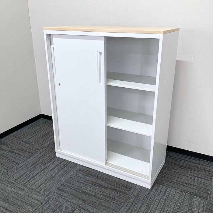 内田洋行 HSシリーズ 引違い書庫 品名:HS SH-10D(B) W900×D400×H1120 天板:ライトファインウッド/本体:オフホワイト 2022年製 中古 ⑩