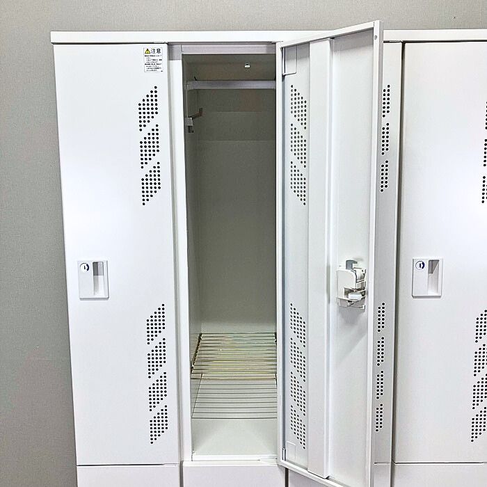 ロッカーは無機質なデザインが多いですが、こちらは扉に通気孔の意匠が施され、湿気や匂いがこもりにくく、デザインと機能性を両立した商品となります。