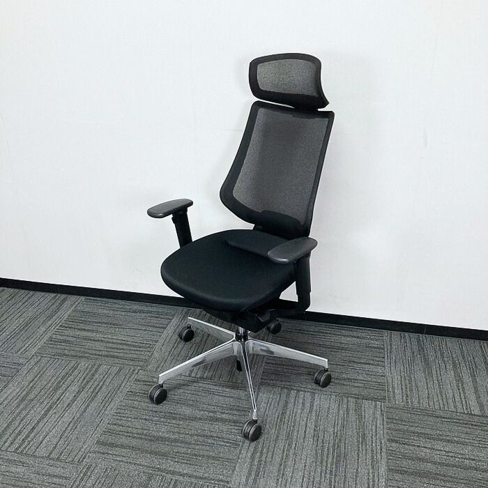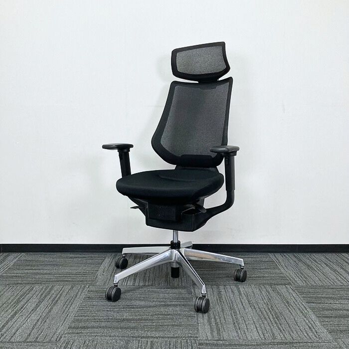コクヨ イングチェアシリーズ オフィスチェア[可動式グリップアーム] CRS-G3402E6 メッシュタイプ ヘッドレスト付き ブラック 2020年製 中古