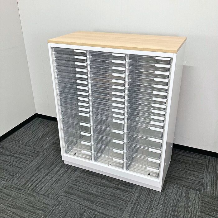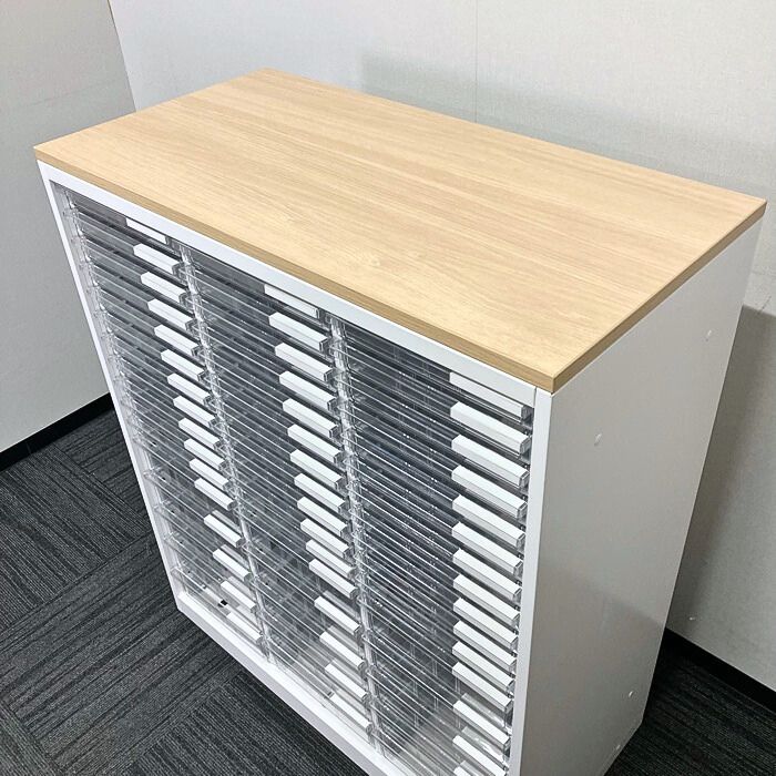 イトーキ シンラインシリーズ クリスタルトレイ[浅型33段/深型15段] HTM-109KAF-W9 W900×D450×H1118 天板:ホワイトオークM/本体:ホワイト 2022年製 中古