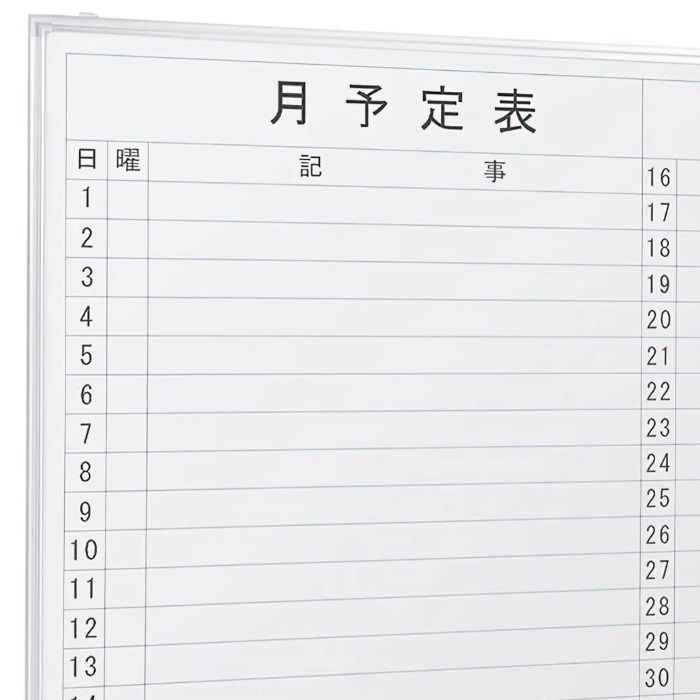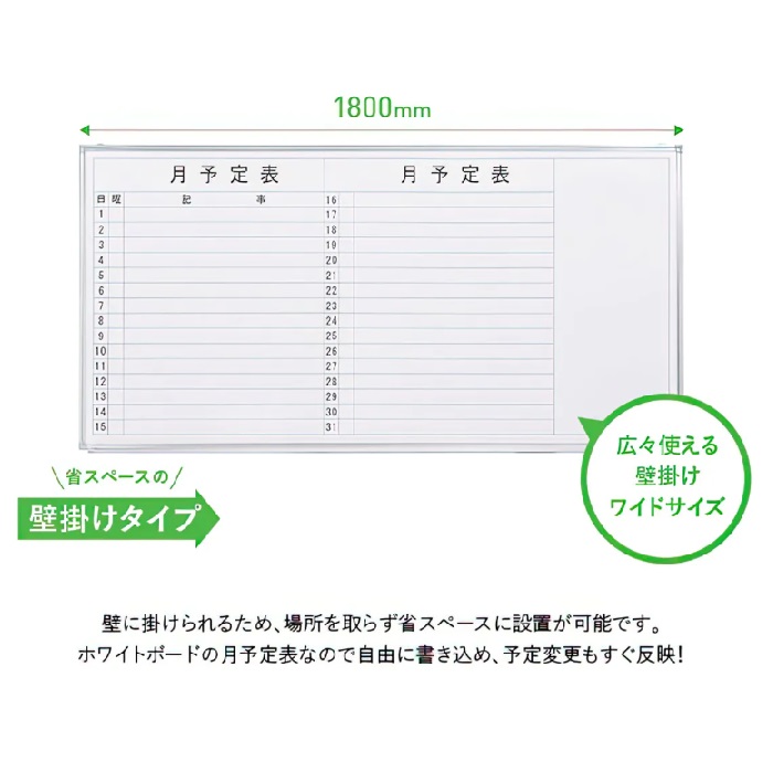 【新品】月予定表 壁掛け 横書き W1800×D69×H905 ホワイト ※送料無料