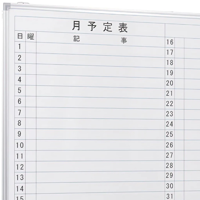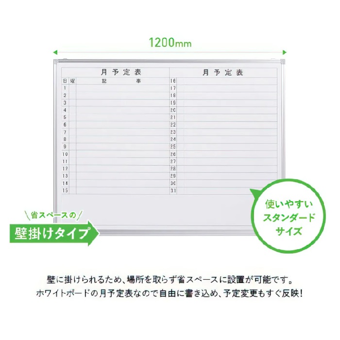 【新品】月予定表 壁掛け 横書き W1200×D69×H905 ホワイト ※送料無料