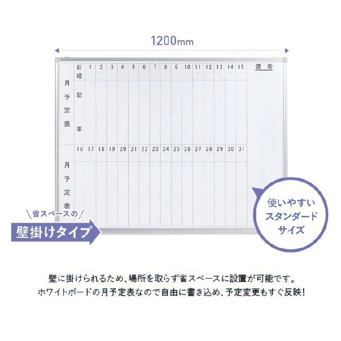 【新品】月予定表 壁掛け 縦書き W1200×D69×H905 ホワイト ※送料無料