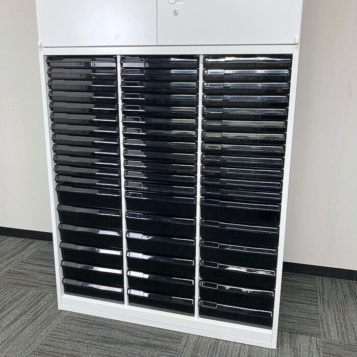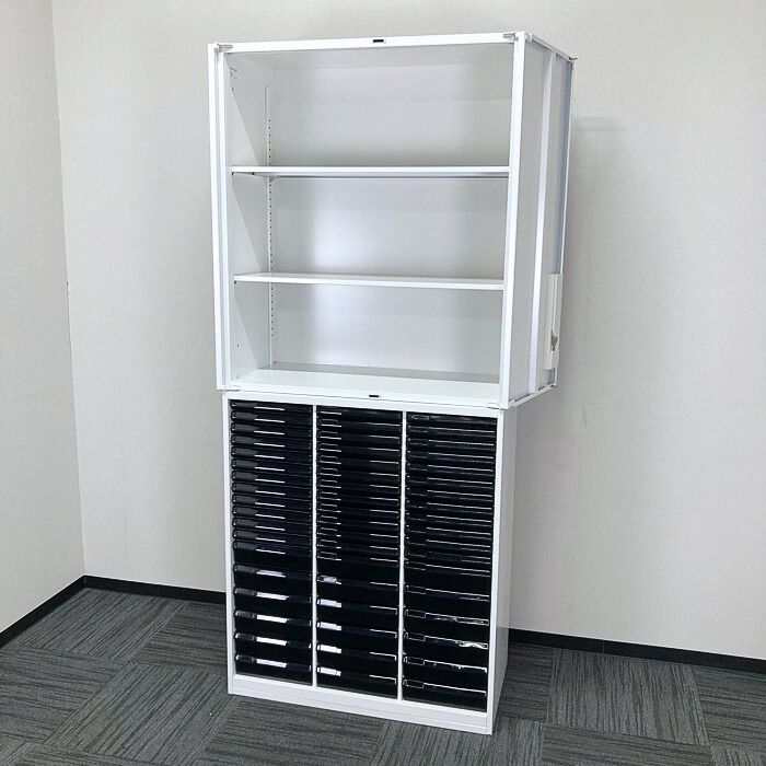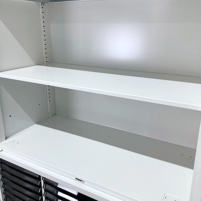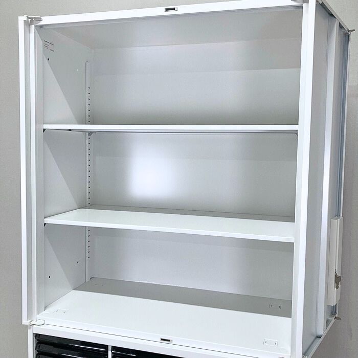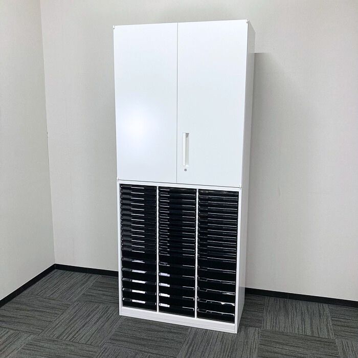 内田洋行 HSシリーズ 両開き書庫+クリスタルトレイ[浅型36段/深型18段] W900×D450×H2150 オフホワイト 2018年製 中古