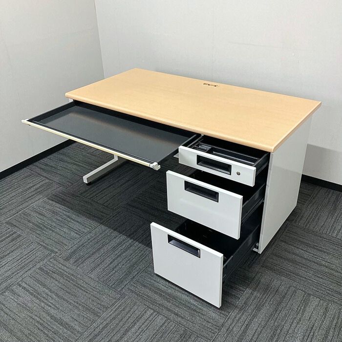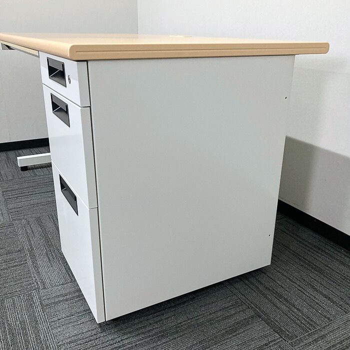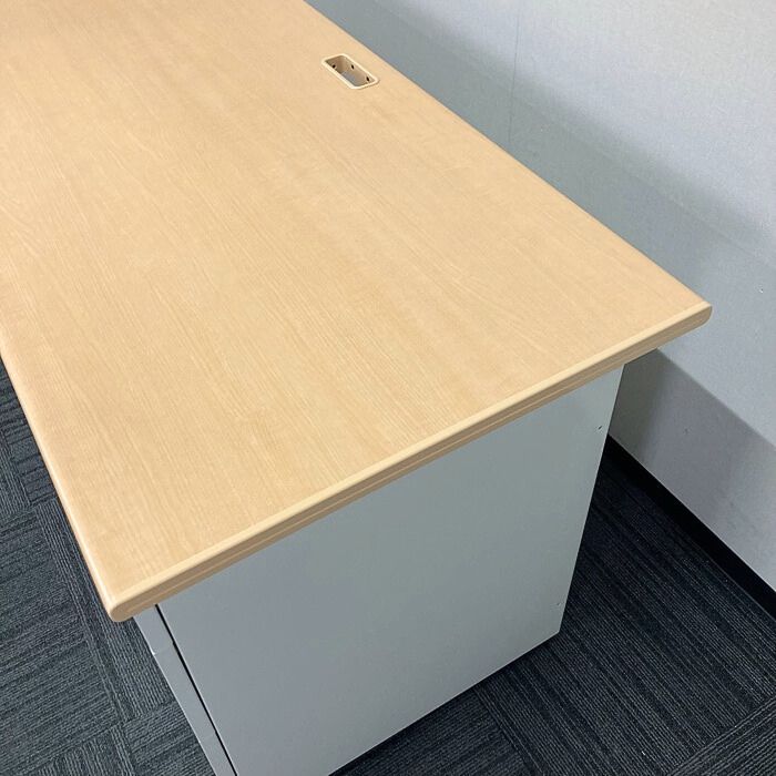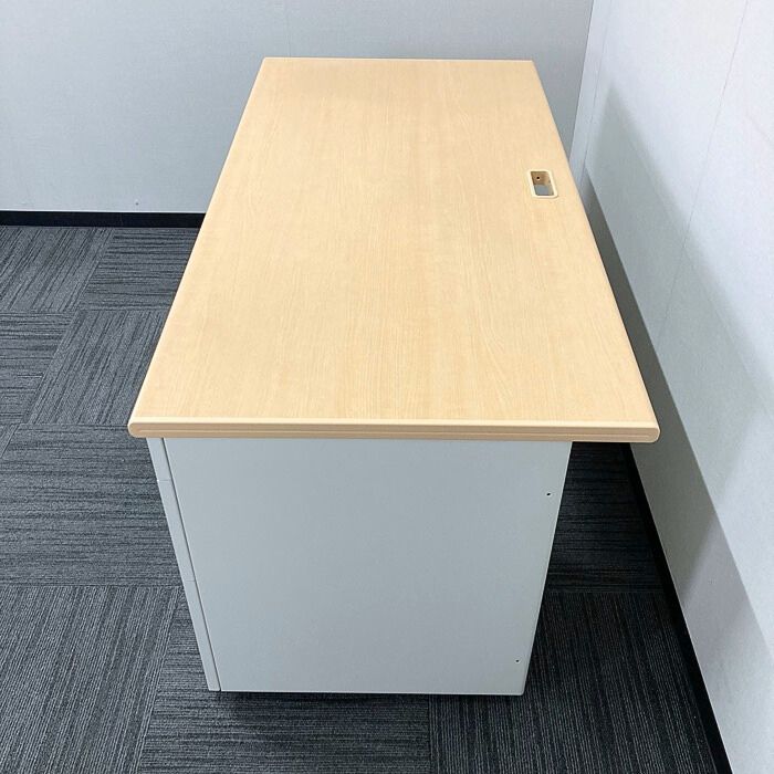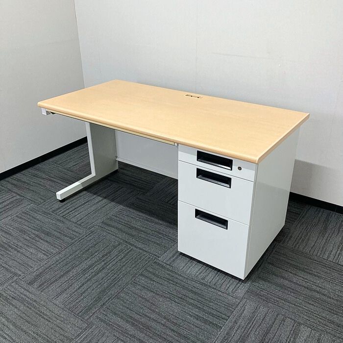 プラス フラットラインシリーズ 片袖デスク SP-T147 MW W1400×D700×H700 天板:ナチュラル/本体:ホワイト 2016年製 中古 ⑳