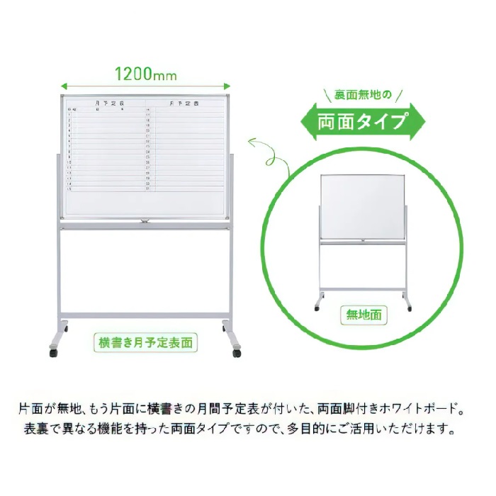 【新品】両面脚付きホワイトボード[横書き月予定/無地] W1285×D530×H1805 ホワイト ※送料無料