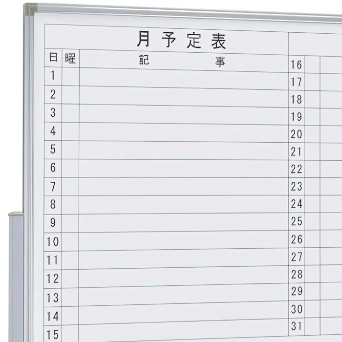 表面は横書き月予定表で裏面は無地になります。