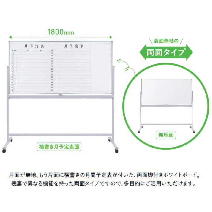 【新品】両面脚付きホワイトボード[横書き月予定/無地] W1885×D530×H1805 ホワイト ※送料無料