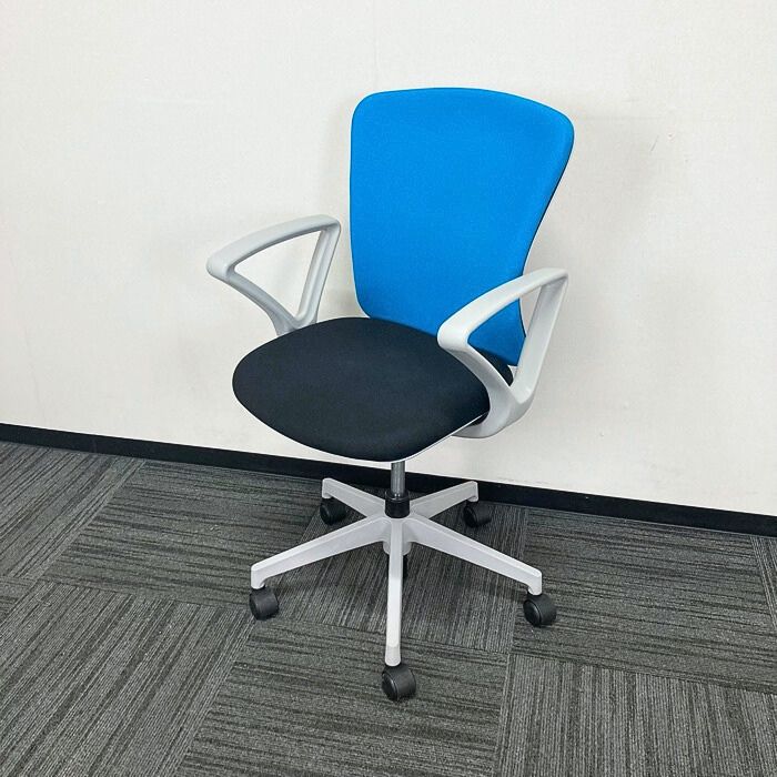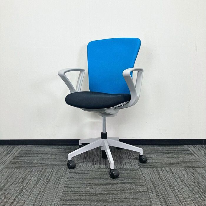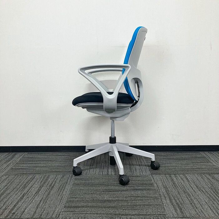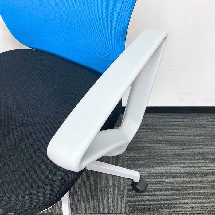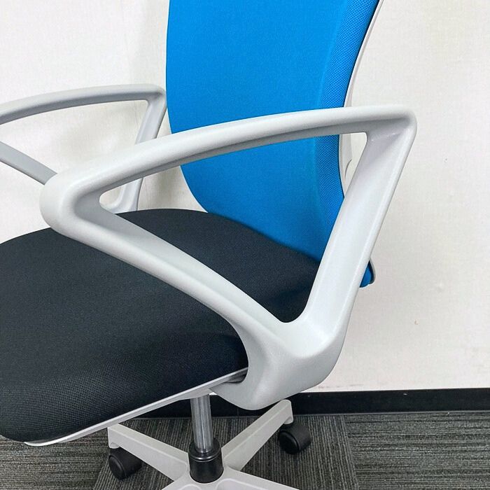 イナバ バルチェチェアシリーズ オフィスチェア[リング肘] ハイバック 背:ライトブルー/座:ブラック 2019年製 中古