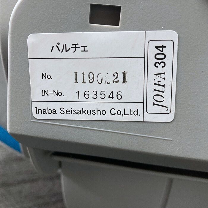 イナバ バルチェチェアシリーズ オフィスチェア ハイバック 背:ライトブルー/座:ブラック 2019年製 中古