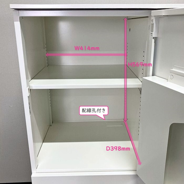 庫内底面奥には配線孔を備えておりモバイル類の充電が可能です。
