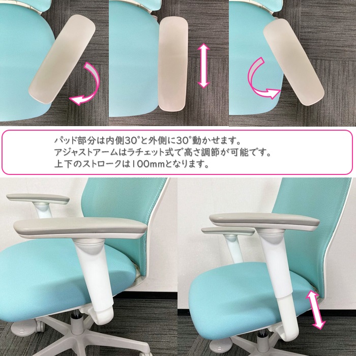 オカムラ CG-Mチェアシリーズ オフィスチェア[アジャストアーム] CG91WR FZK6 背/座:セージ色 2021年製 中古 ⑩