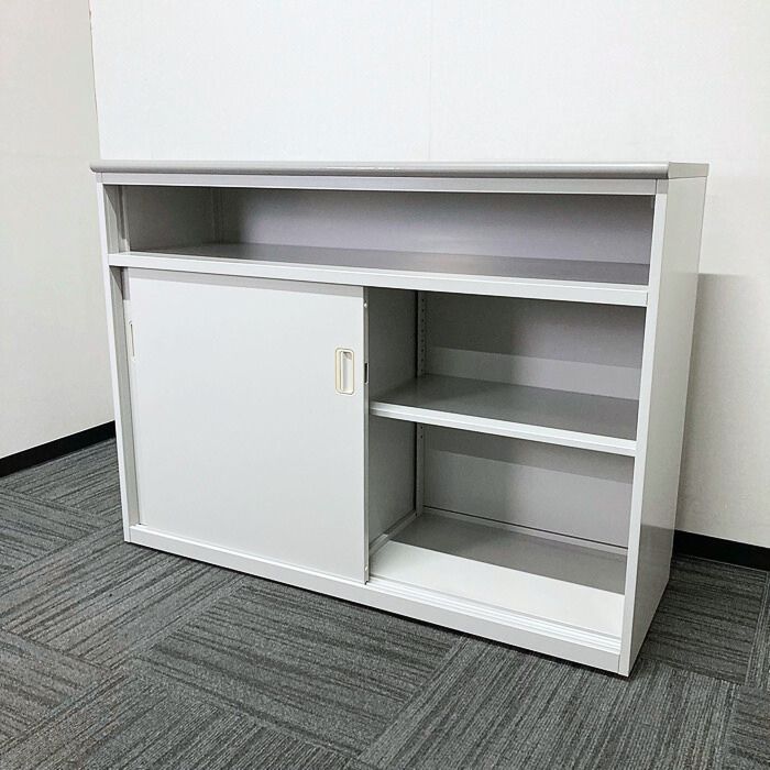内田洋行 KC-1000Nシリーズ ハイカウンター[棚付き引戸タイプ] W1200×D460×H900 ペールグレイ 2013年製 中古