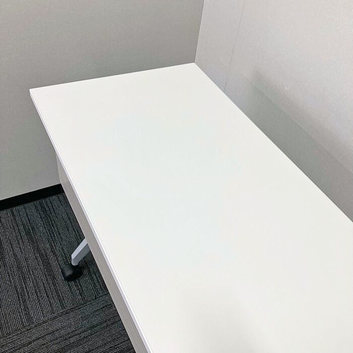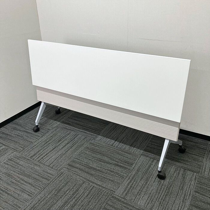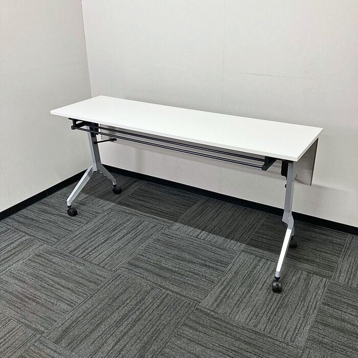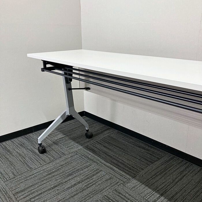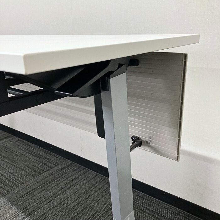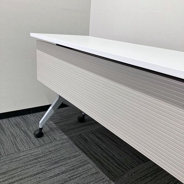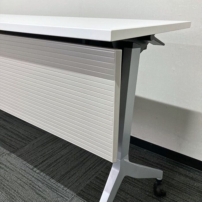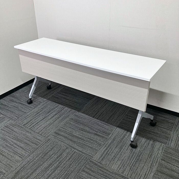 内田洋行 パラグラフシリーズ 平行スタックテーブル W1500×D450×H720 幕板付き 棚板付 天板:ピュアホワイト/脚:シルバーメタリック 2019年製 中古 ⑩