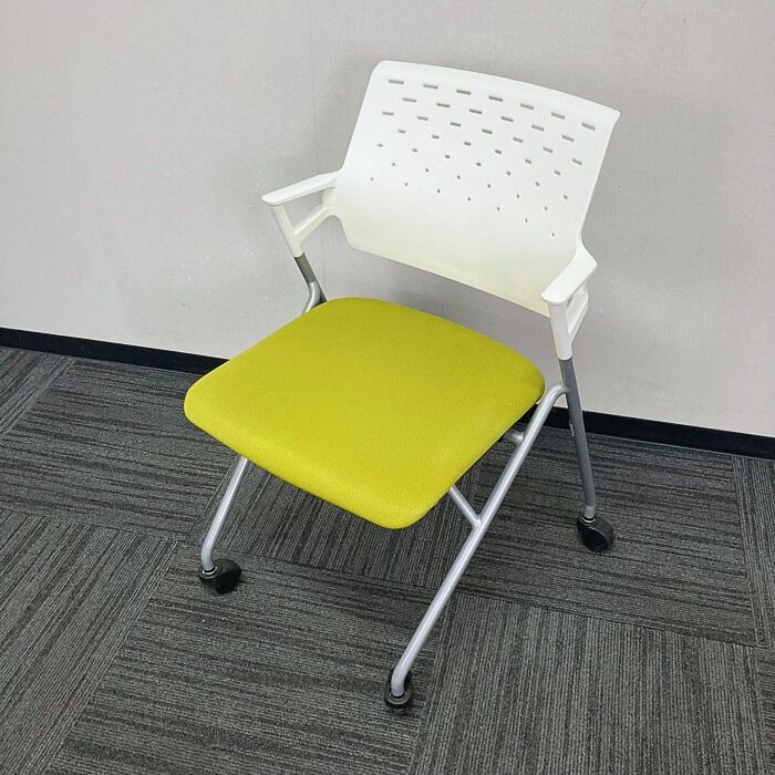 コクヨ ピエガシリーズ ネスティングチェア[ゴムキャスター] CK-720PAWG4Q4 背:ホワイトシェル/座:ライトオリーブ/脚:シルバー 2017年製 中古 ⑩