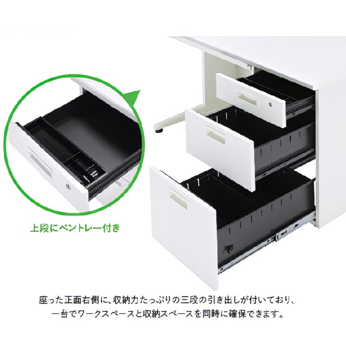 スタンダードなデザインと仕様の片袖デスクです。