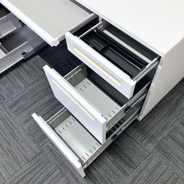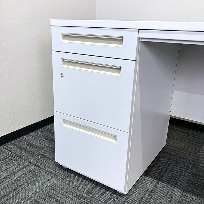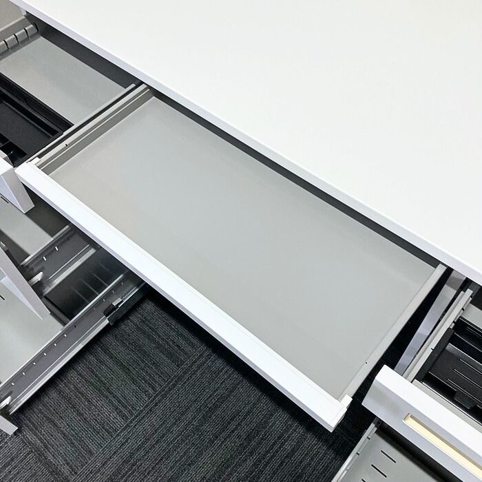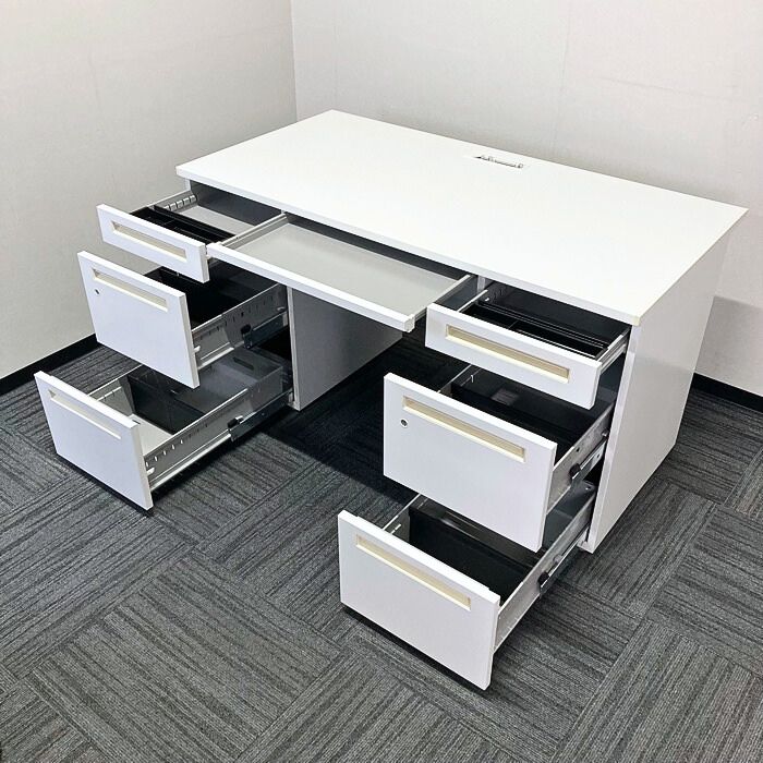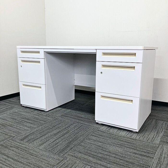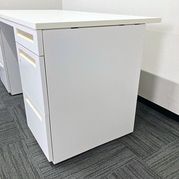 内田洋行 スカエナデスクシステム[Stype]シリーズ 両袖デスク 型番:5-110-6600 W1400×D700×H720 天板:ピュアホワイト/本体:オフホワイト 2013年製 中古 ⑳