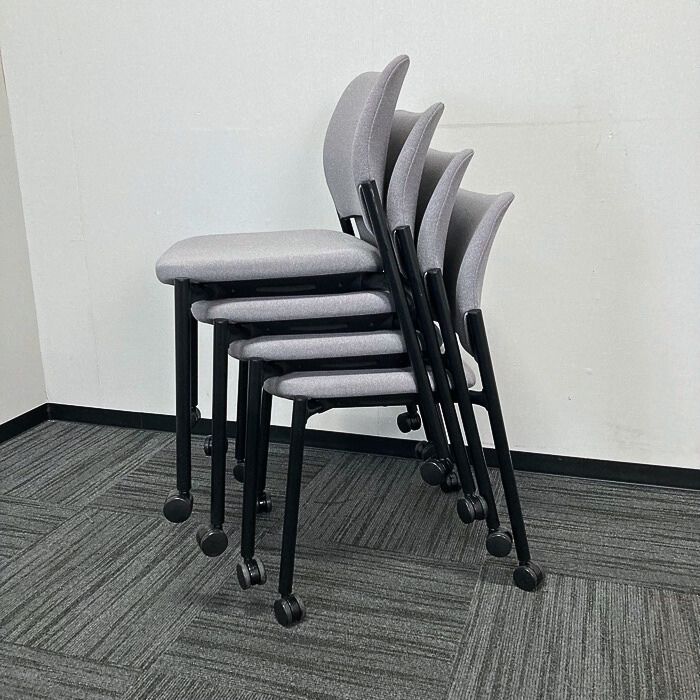 オカムラ 8147シリーズ 会議用チェア 8147EZ FXW1 背・座:グレー/ブラックフレーム 2020年製 中古 ⑩