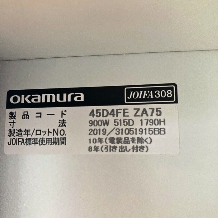 オカムラ FZタイプシリーズ 4人用ロッカー[ダイヤル錠] 45D4FE ZA75 W900×D515×H1790 ネオホワイト 2019年製 中古 ⑩