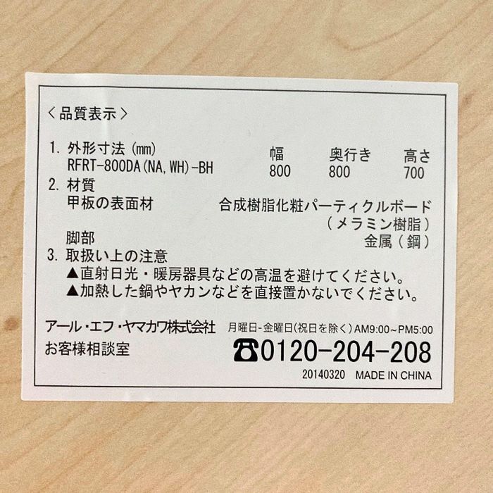 アール・エフ・ヤマカワ リフレッシュテーブルシリーズ 円形テーブル RFRT-800DA-BH Φ800×H700 天板:ナチュラル/脚:シルバー 中古 ⑳