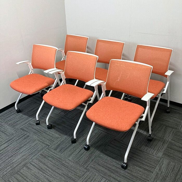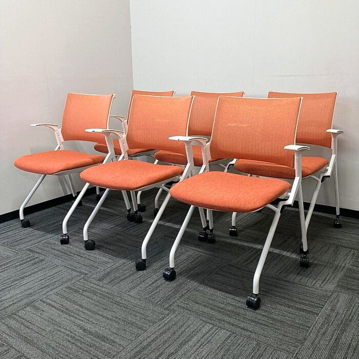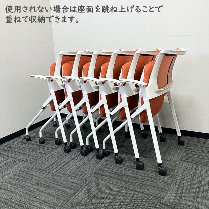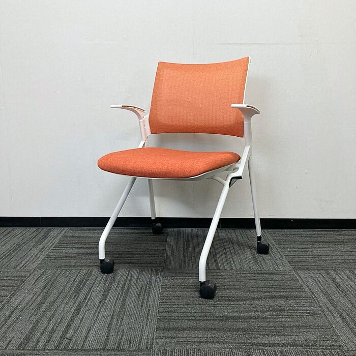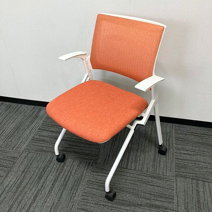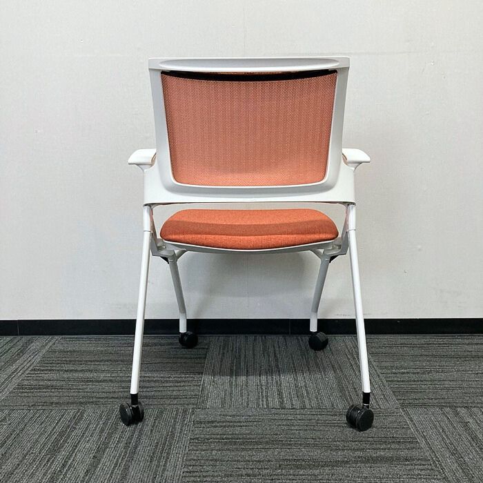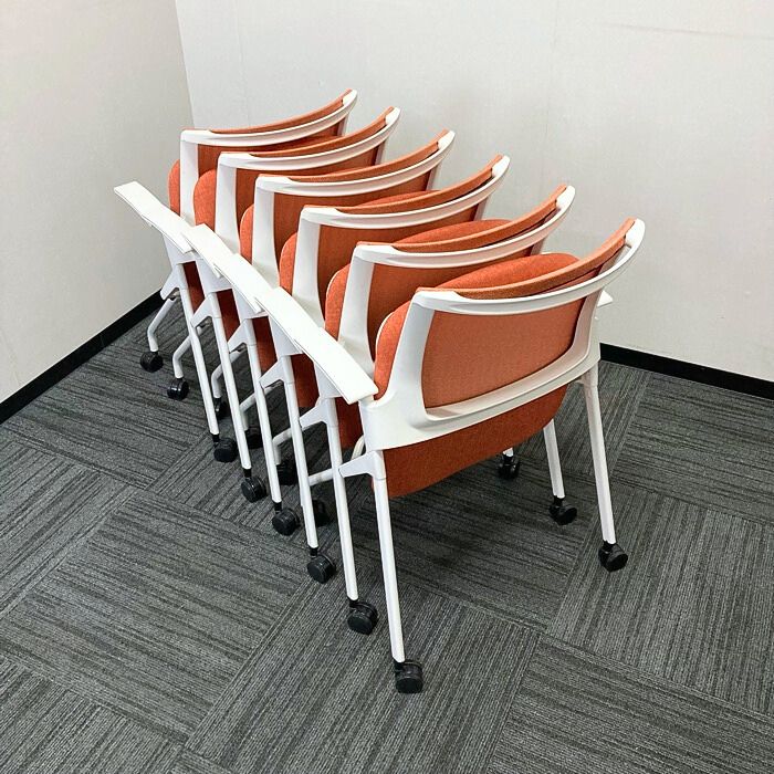 イトーキ モノンチェアシリーズ 会議用チェア KLD236JE-W9W9D4 背座:パーシモンオレンジ/フレーム:ホワイト 2022年製 中古 ⑩