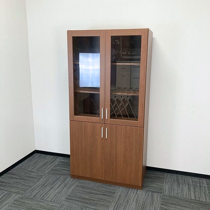 コクヨ S370シリーズ 両開き書棚[ガラス扉タイプ] MGH-S37B M55NN W900×D465×H1800 ブラウン 2019年製 中古