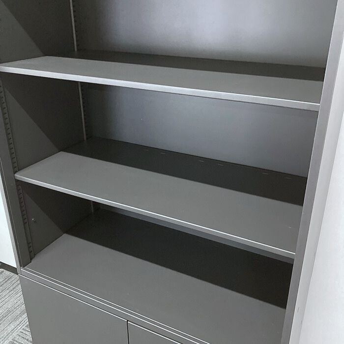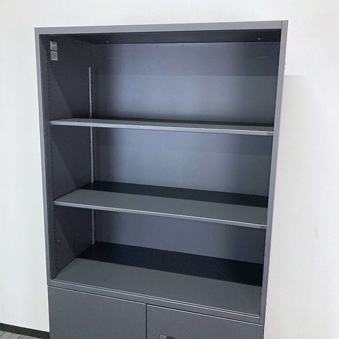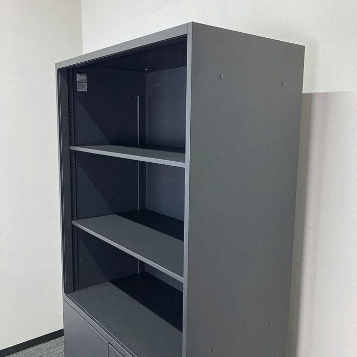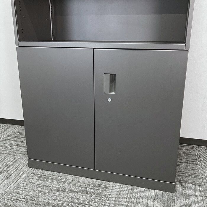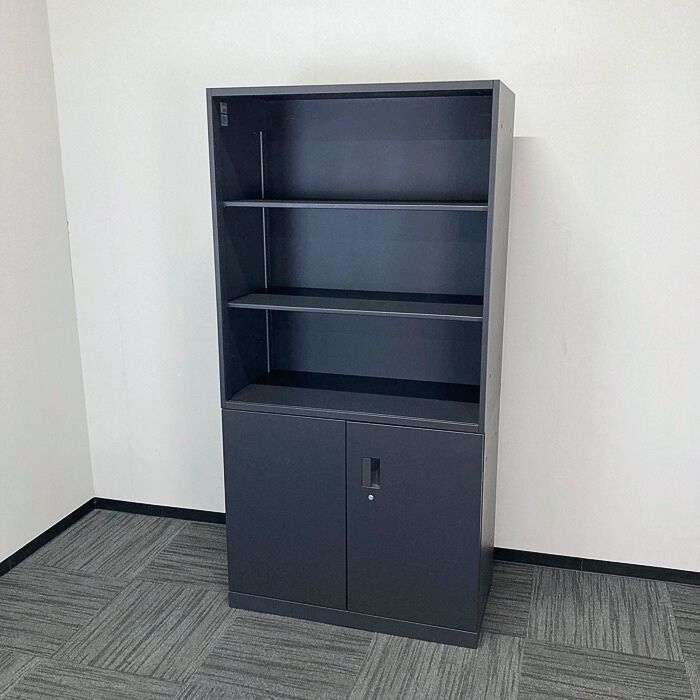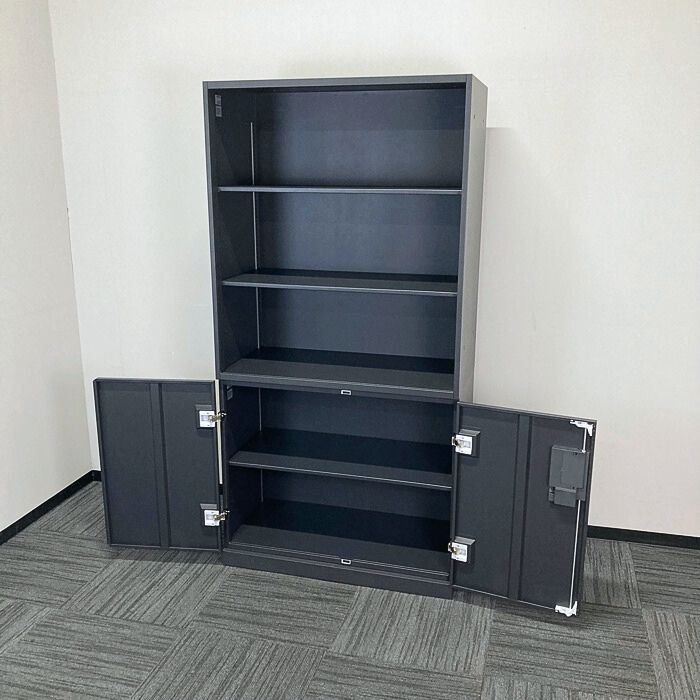 イトーキ エスキャビネットシリーズ オープン棚型+両開き書庫 W900×D450×H1790 サテンブラック 2021年製 中古