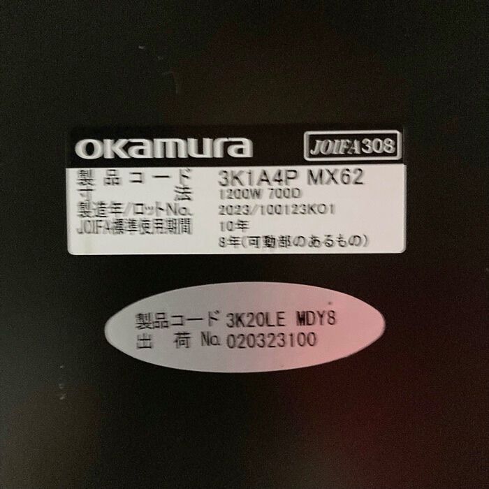 オカムラ ソリストシリーズ  ワークデスク 3K1A4P MX62 W1200×D700×H720 天板:プライズウッドライト/脚:ブラック 2023年製 中古 ⑩