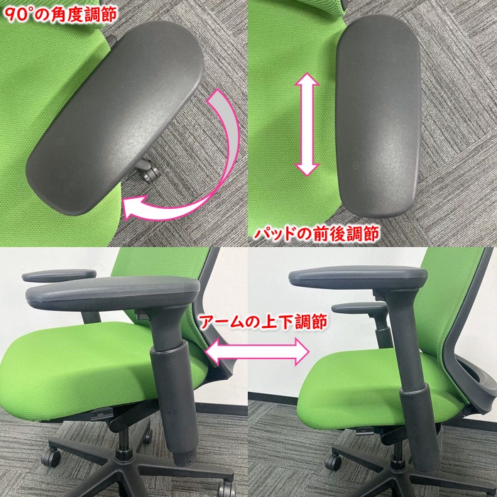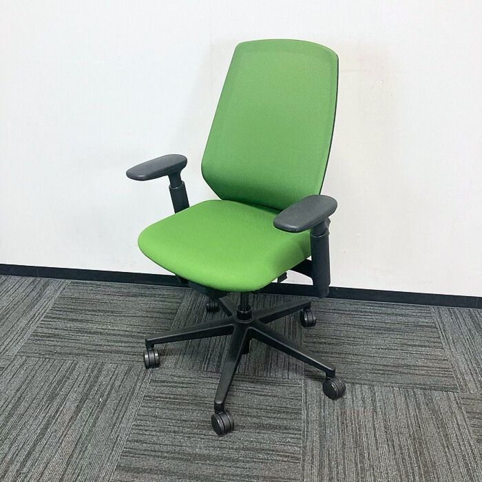 内田洋行 ニンバスチェアシリーズ オフィスチェア[アジャスタブル肘] NA-00B ハイバック 背座フォレストグリーン/ブラックフレーム 2021年製 中古 ⑩