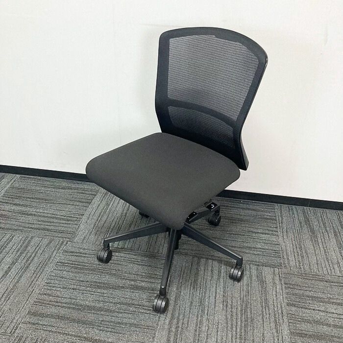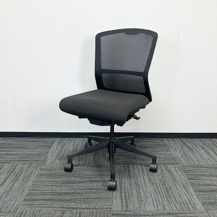 内田洋行 エルフィチェアシリーズ オフィスチェア 品番:ELA2-00B ミドルバック 背座:ジェットブラック/フレーム:ブラック 2022年製 中古