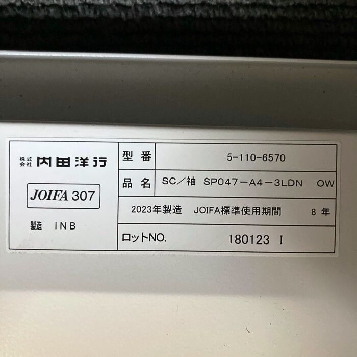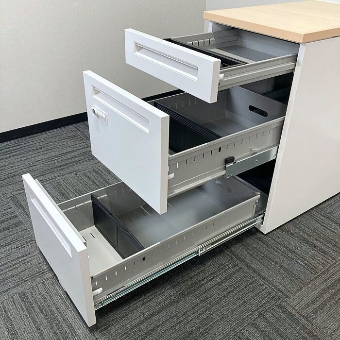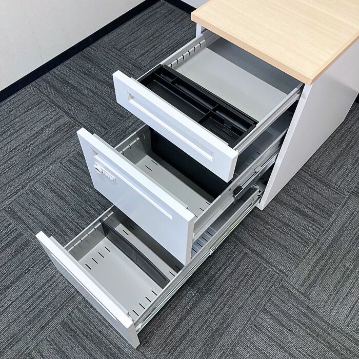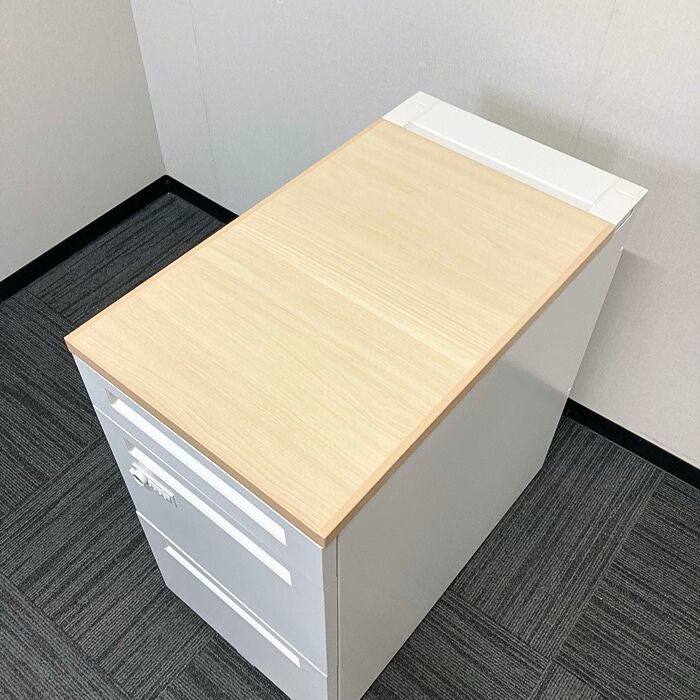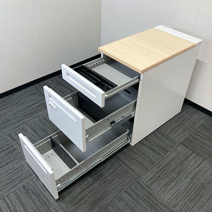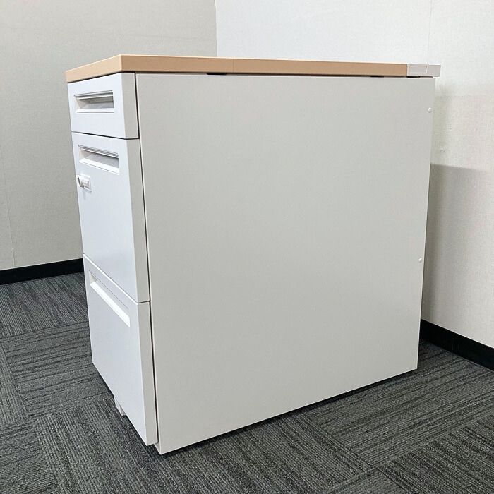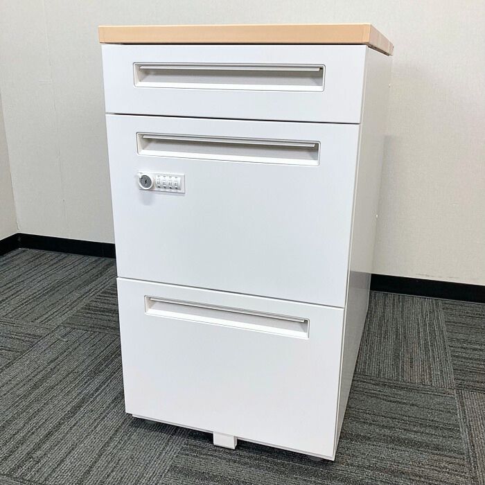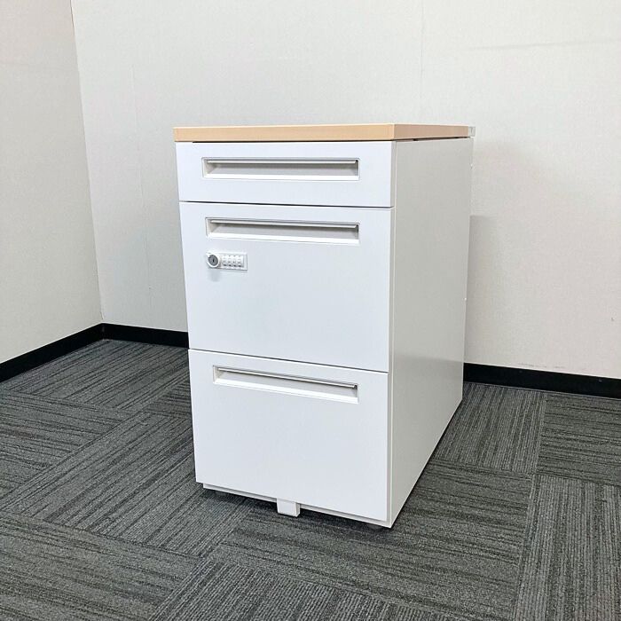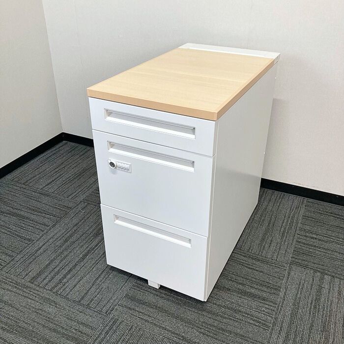 内田洋行 スカエナデスクシステムシリーズ 3段脇机[ダイヤル錠] 型番:5-110-6570 W400×D700×H720 天板:ライトファインウッド/本体:オフホワイト 2023年製 中古
