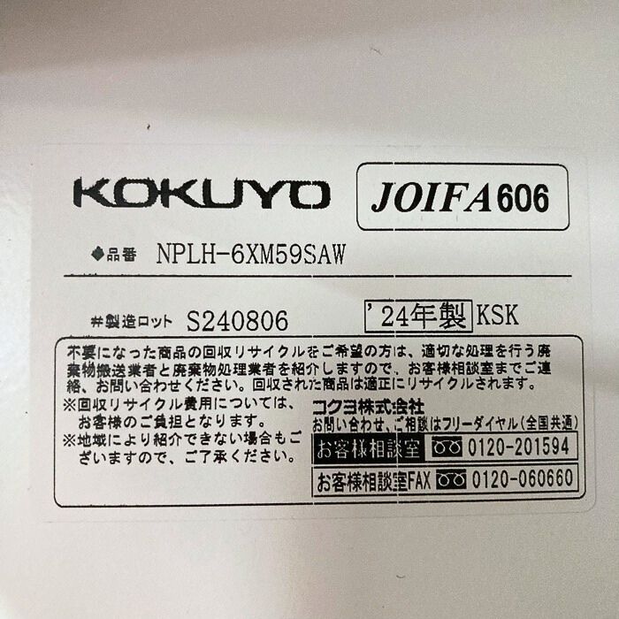 コクヨ イノンシリーズ 6人用パーソナルロッカー[ダイヤル錠] NPLH-6XM59SAWN W900×D450×H1190 天板:ナチュラルオーク/本体:ホワイト 2024年製 中古 ⑩