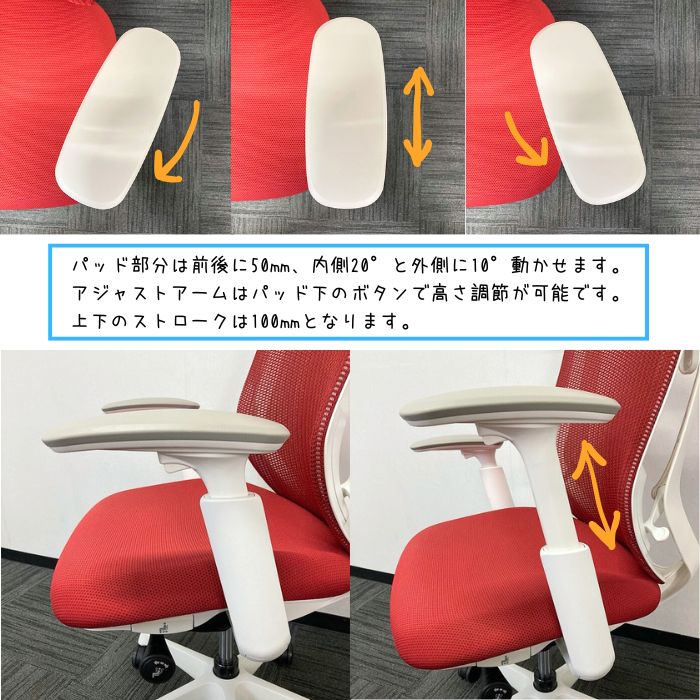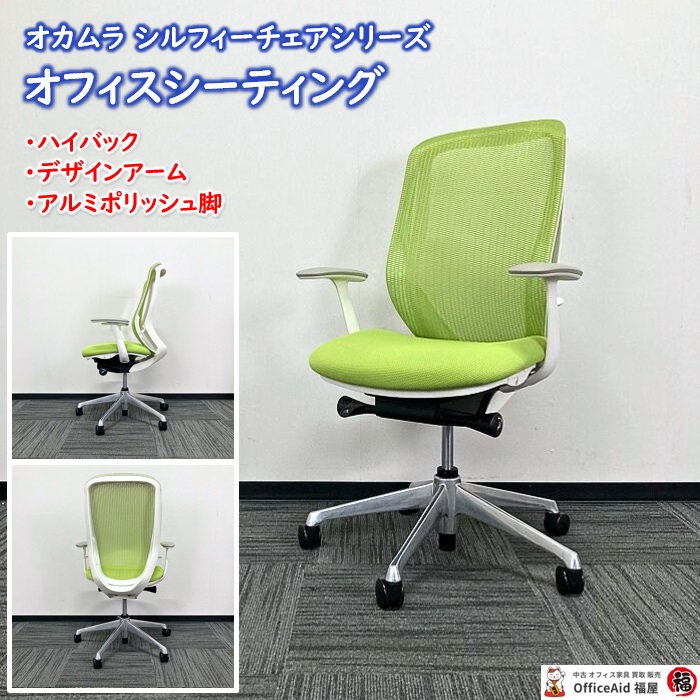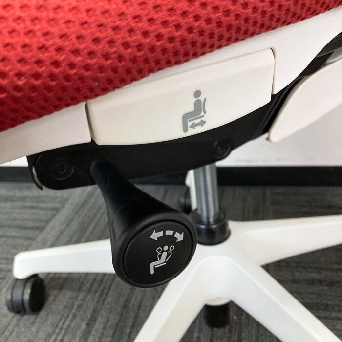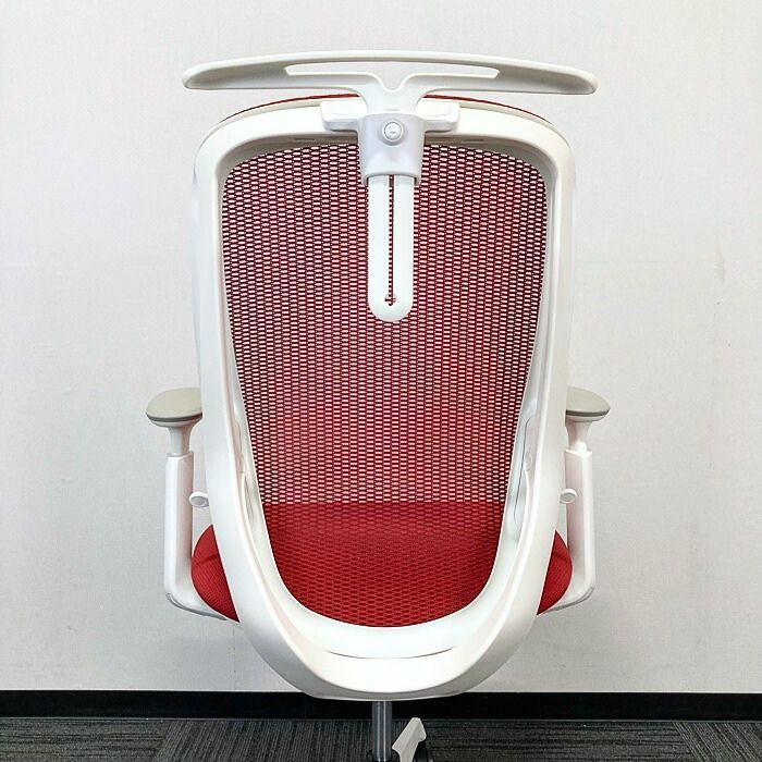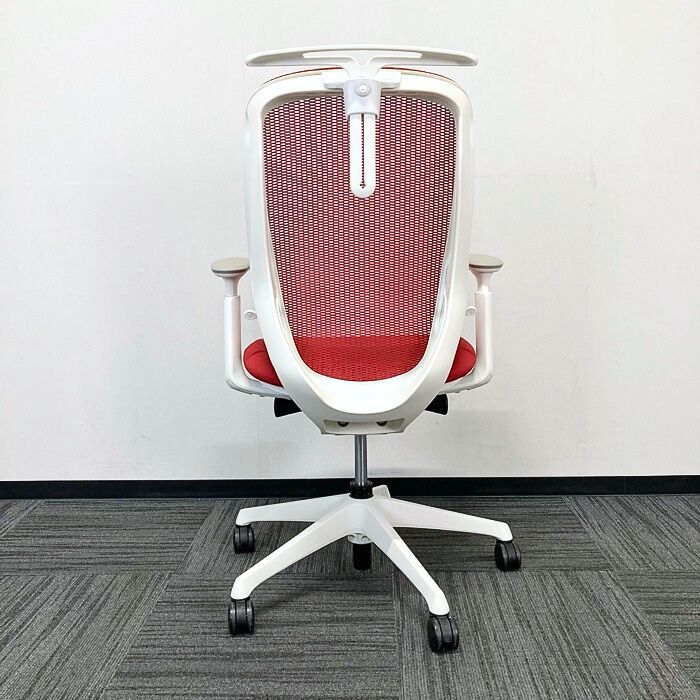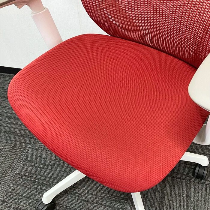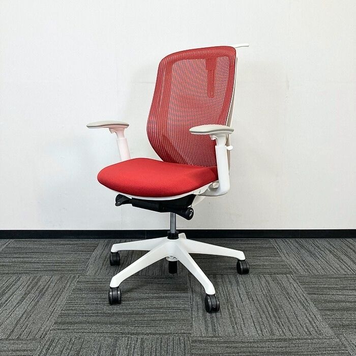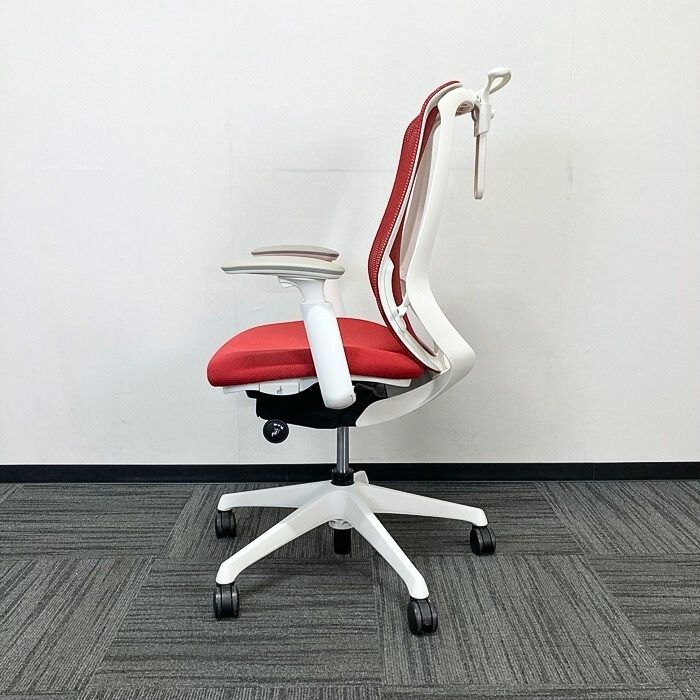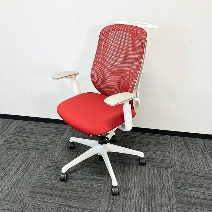 オカムラ シルフィーチェアシリーズ オフィスシーティング[アジャストアーム] C636XW FMP9 ホワイトフレーム ハイバック ハンガー付き背/座:レッド 2019年製 中古